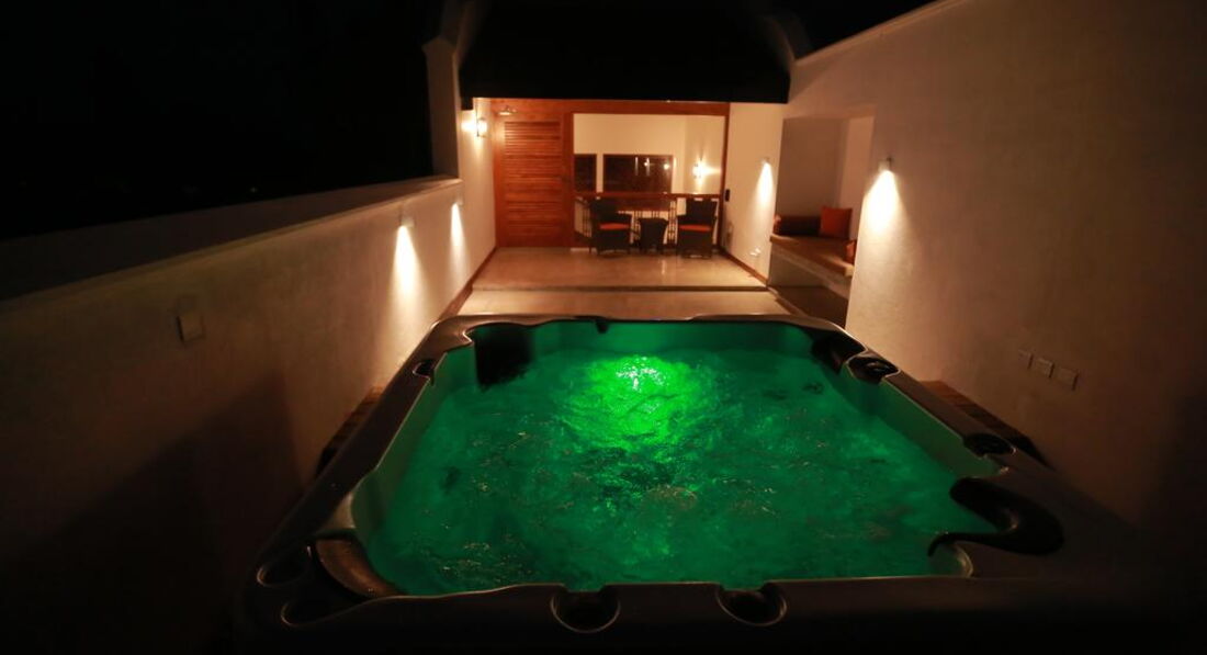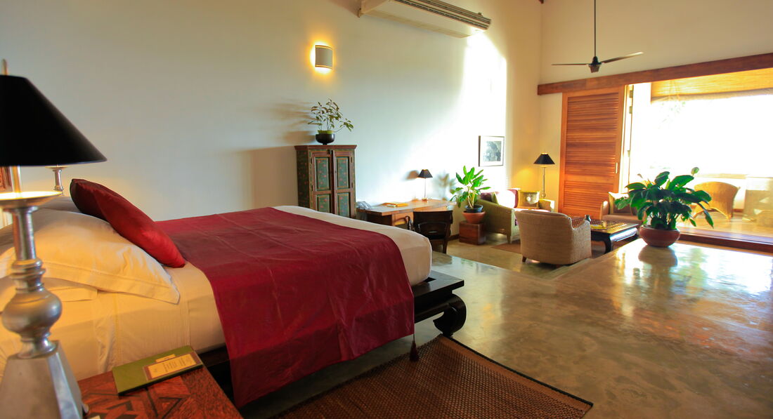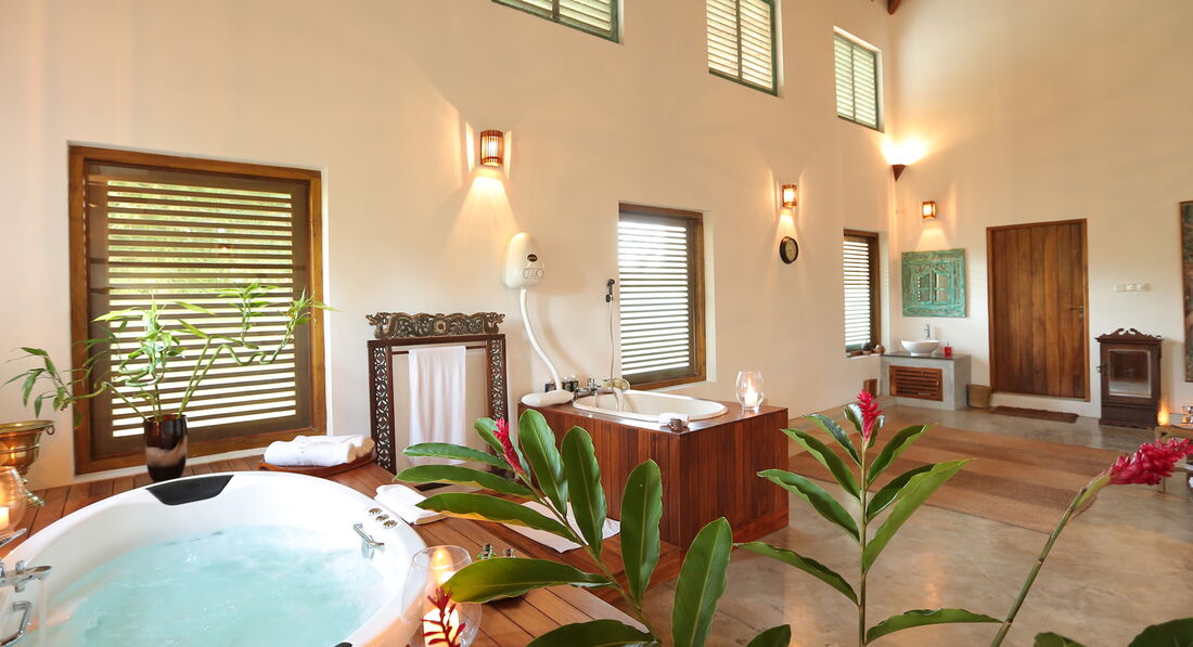 1 Surya Suite (111 м2, макс. 3 або 2+2 особи). Двохрівневий номер-пентхаус, розташований на другому поверсі: на верхньому рівні-спальня; на нижньому-вітальня; просторий балкон; вид на океан.