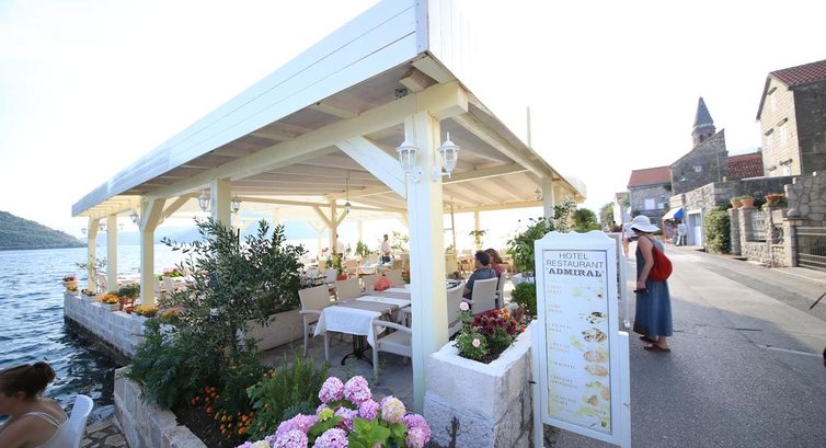 Старовинна будівля кам'яної кладки містить 8 номерів, сучасний інтер'єр, ресторан національної та середземноморської кухні. Готель Адмірал - палац 18 століття, перероблений під маленький готель, зі збереженим фасадом старовини. З причалу постійно курсує невеликий катер – на острів Госпа од Шкрпела (2 євро – проїзд).