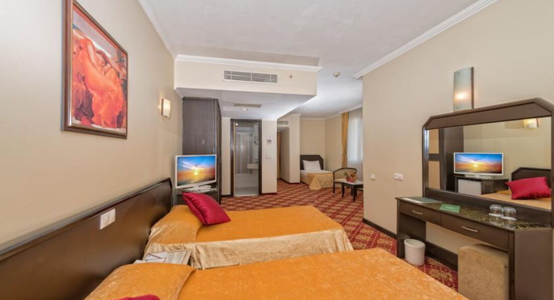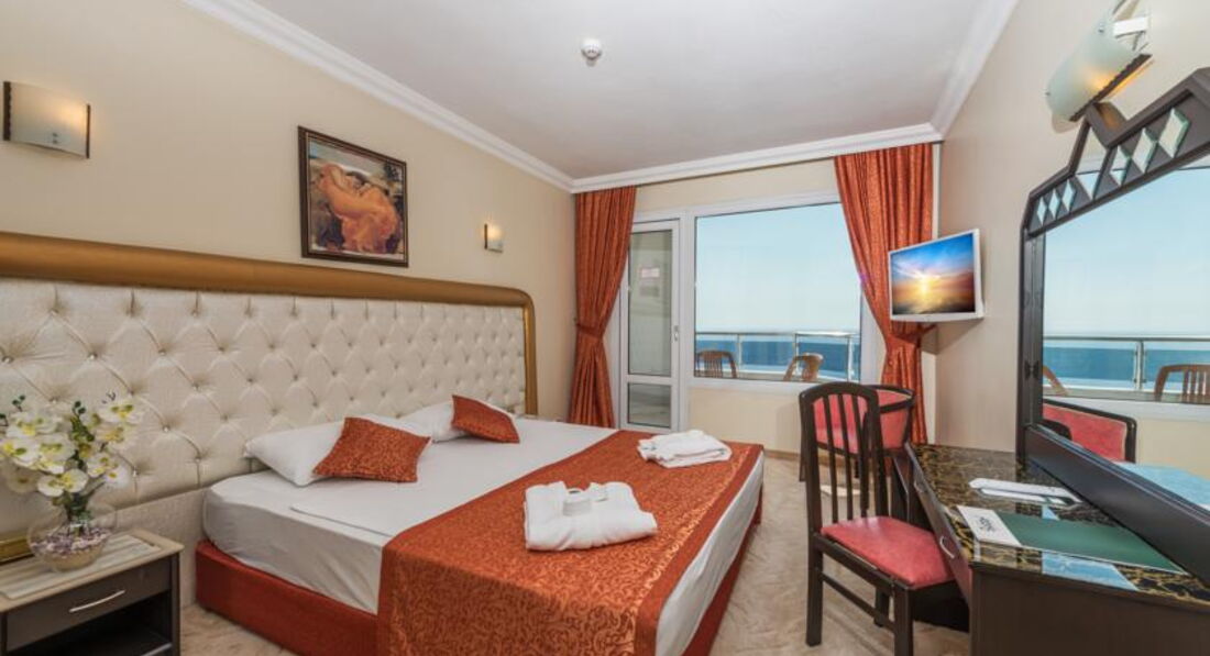 Привет всем! Хочу сказать что кто ищет тот найдет. После скучнейшего отпуска в Египте было просто супер! Очень понравилось то что отель в находится в городе. Заселили на 10 этаж с видом на море и город. До этого читал в отзывах что бы получить хороший номер надо на рецепшене 20$ дать. В принципе был готов,но решил сперва посмотреть что дадут. И оказалось все ок! Обычные номера,все хорошо чисто. Удивил конечно телевизор 21 диагонали, сейчас уже в России мало таких в гостиницах. Прилетели где то в обед разместили быстро и четко.Экскурсии у тур оператора не брали. Сходили прогулялись по городу, нашли агенство и взяли пикник +рыбалка за 55$ в гостинице по 70$ предлогали. На пикнике удивило то что ловили обычных росийских карасей.Хотя экскурсовод Мустафа обещал форель. Но ничего мы все равно остались довольны. Поели шашлыка,форель,а потом еще и барашка на вертеле. Т.е. не пожалели. Кормили и поили на убой! Так же ходили в аквапарк,он в соседнем отеле находится. На рецепшене в своем отеле взяли фаер на скидку 30% и в итоге аквапарк обошелся нам в 20$ c носа. От отеля 55$ предлогают.Правда возят в другой аквапарк. Меня устроил и этот.