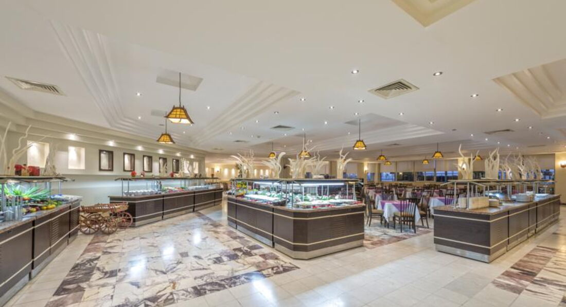 Питание нормальное, стандартное турецко-египетское, но в феврале в этом году были в Египте в 4* - там мяса было до отвала и вообще стол богаче, фруктовые нектары приличнее.
