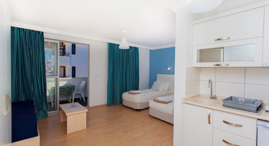 В готелі: 45 номерів Apartment (4 чол.)У номері: • кондиціонер; • телефон; • сейф; • кухня; • холодильник; • електрочайник; • ванна кімната.