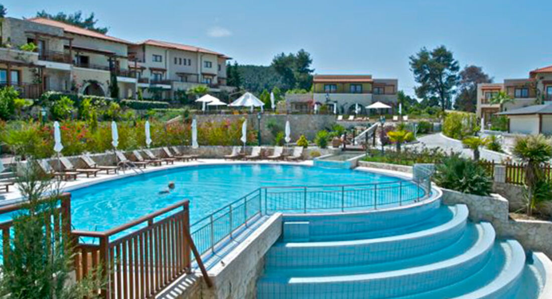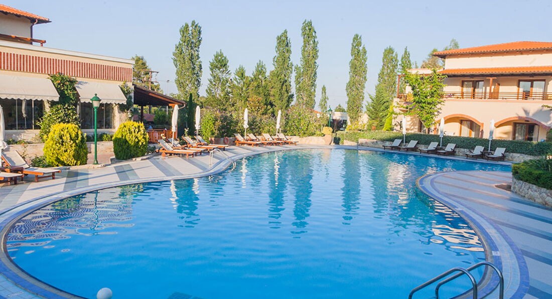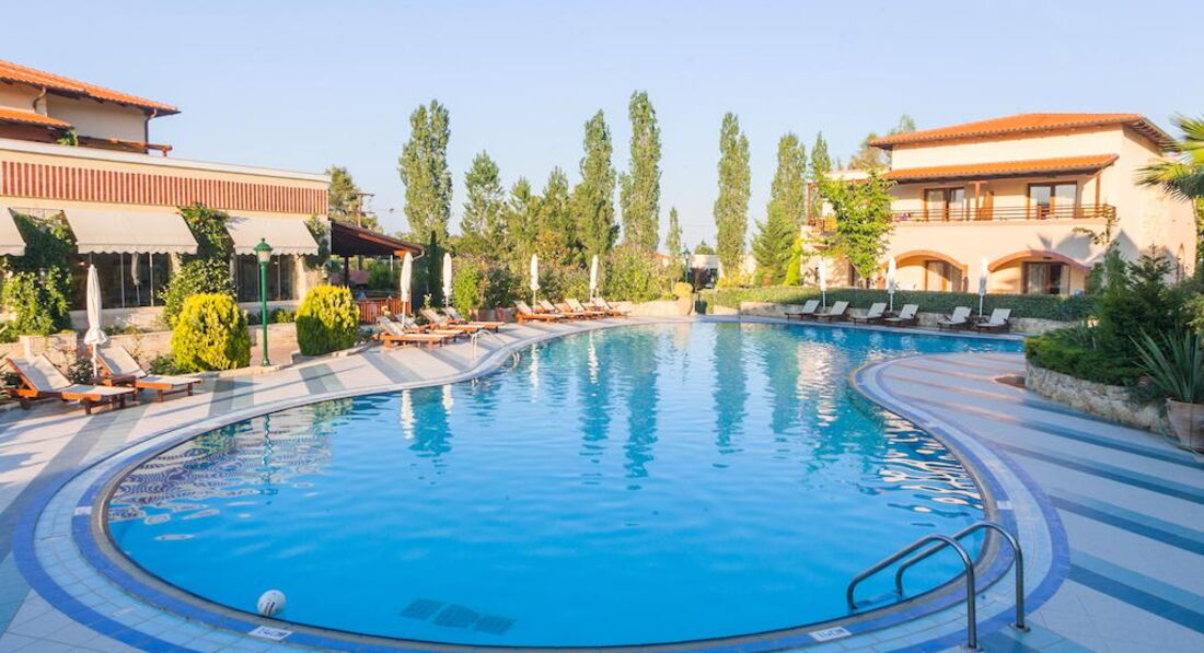 Розташування: півострів Кассандра, в 3 км від курортного селища Калліфея, в 90 км від аеропорту.