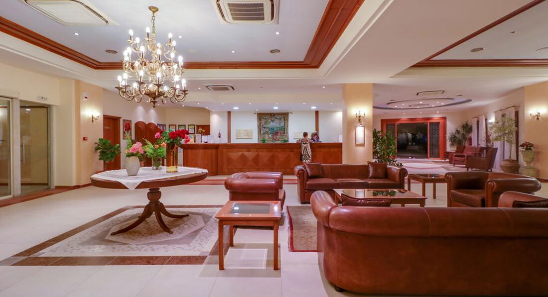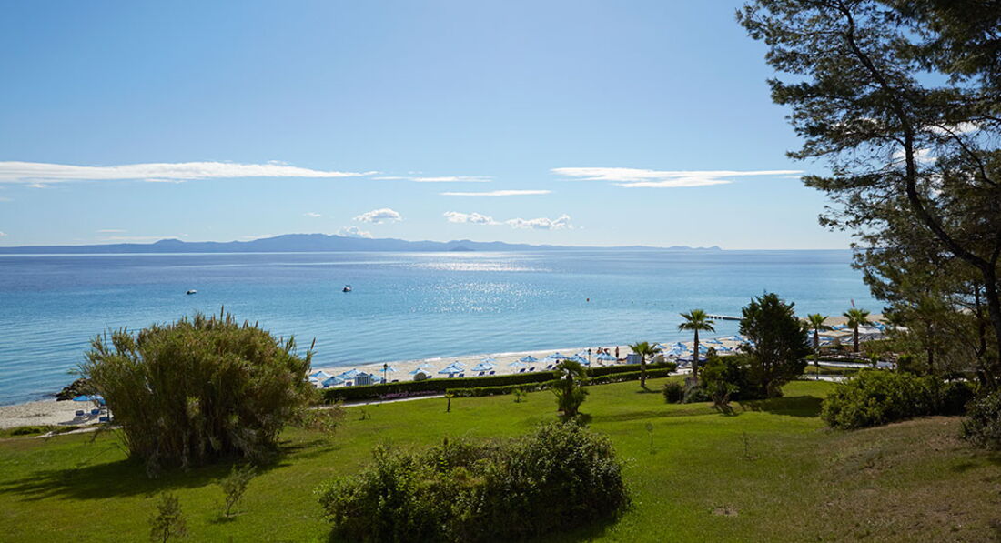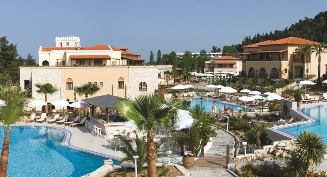 Територія та послуги: Інтернет Wi-Fi інтернет – безкоштовно (видається до 2-х кодів на рецепції на номер). У разі, якщо після підключення до інтернету їм не користуються протягом 2-х годин, то він вимикається, після чого за кодом можна зайти повторно. Конференц зал 3 конференц-зали з технічним обладнанням: Makedonia – 550 місць, Alexandros – 250 місць, Vergina – 150 місць та зал засідань (без техн. обладнання) – 20 місць. Бар 2 лобі-бари та бар на пляжі, 3 бари біля басейнів Ресторан 2 центральні ресторани (один – у корпусі над дорогою) – сервіруються сніданок та вечеря – шведський стіл, ресторан а la сarte, ресторан самообслуговування. Dress Code: тільки довгі штани та закрите взуття для чоловіків – під час вечері. Для жінок занадто короткі шорти і пляжний або спортивний одяг не допускаються. Магазин міні-маркет та ювелірний магазин Обмін валюти Поштові послуги послуги кур'єрської пошти, факсимільні та секретарські послуги Сейф Трансфер Автобусна зупинка за 30 м. Курсують автобуси до Салонік та до Каліфеї та Пальюрі (8 разів на день) Хімчистка/пральня Російськомовний персонал Умови для інвалідів - пандуси та номери Номери для некурців Щоденне прибирання номерів, зміна білизни через день Розваги та спорт: Басейн 9 басейнів (8 – з морської – один з них з джакузі та 1 – з прісною водою). У номерах із приватними басейнами - прісна вода. Тільки для дорослих - критий басейн Джакузі – тільки для дорослих Масаж Спа Aegean SPA-center Масаж, процедури з догляду за обличчям та тілом, аромотерапія, таласотерапія, пресотерапія, вирішення проблем з целюлітом, програми для зняття стресу, загального зміцнення організму. Телезал Тренажерний зал – тільки для дорослих (безкоштовно) – !! Не в спа-центрі Турецька лазня – тільки для дорослих (безкоштовно) – !! Не в спа-центрі Аеробіка - аква-аеробіка Водні види спорту Пляжний волейбол Теніс з освітленням та штучним трав'яним покриттям, ракетки - за доплату Анімація Більярд Жива музика Для дітей: Дитяче ліжечко Дитячий майданчик 2 дитячі майданчики Дитячий басейн 2 дитячі басейни Дитячий клуб – 4-12 років Дитяче харчування по запиту Няня за запитом Дитяча анімація - малювання, дартс, міні-диско. Живлення: Сніданок, вечеря (HB) Пляж: Піщаний пляж – при готелі (номери, розташовані через дорогу, мають доступ до пляжу через приватний підземний перехід ~ 7 хвилин ходьби) Парасольки за доплату Лежаки за доплату Пляжні рушники безкоштовно До оплати приймаються кредитні картки: Visa, Master Card, Eurocard, Amex, Diners, Maestro.