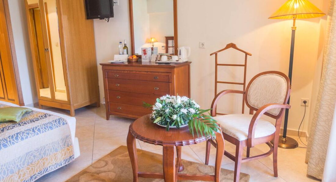 Всього 255 номерів: Standard Rooms (~25 кв.м), Double Rooms Eco (~25 кв.м), Doubles Superior Sea View (~38 кв.м), Doubles Superior Pool View (~38 кв.м), Maisonettes (~50 кв.м), Suites (~60 кв.м), Suites Sharing Pool (~44 кв.м), Suites Superior Private Pool (~67 кв.м), Presidential Suite SV (~80 кв.м) . 157 Standard Rooms та 83 Doudles Superior (у центральних будівлях та бунгало), 15 Suites (у бунгало). Типи номерів: Standard Room Розташовані в центральній будівлі та в бунгало. Вид на басейн/садок або море. Double Rooms Eco Номери розташовані у різних корпусах готелю. Немає виду на басейн та на море. Double Superior Sea View Розташовані в основному будівлі на 1-му та 2-му поверхах. Вітальня і спальня, ванна кімната, в деяких номерах і окремий WC, балкон. Вид на море. Double Superior Pool View Розташовані в бунгало (в комплексі над дорогою), вітальня і спальня, ванна кімната, в деяких номерах і окремий WC, балкон. Вид на басейн. Suite-Maisonette Двохрівневі номери відкритого планування, розташовані в бунгало (на першому - вітальня, душова, балкон; на другому - спальня та ванна кімната (ванна). Вид на море. Suite Розташовані в бунгало, на 1-му поверсі. 2 кімнати (спальня з дверима, вітальня), джакузі, 2-а ванна кімната з душовою, тераса, вид на море. Suite Standard Sharing Pool Розташовані у бунгало. Персональний басейн на 2 сюїти (прісна вода), 2 кімнати (спальня з дверима, вітальня), ванна кімната (ванна), тераса, вид на море. Suite Superior with Private Pool Розташовані в бунгало. Персональний басейн (прісна вода), 2 кімнати - спальня з дверима, вітальня (в одній з сюїт є додаткова маленька дитяча з одним ліжком), 2 ванні кімнати (в одній - джакузі, в другій - душова), тераса, вид на море. Presidential Suite Окремий будиночок із приватним басейном. 3 кімнати (вітальня, 2 окремі спальні – кожна з дверима), 2 ванні кімнати (в одній – джакузі, у другій – ванна).У номері: Апарат для приг. кава в сьюїтах Балкон/тераса Ванна/душ Кондиціонер Міні-бар у сюїтах Музичний канал Російський канал Супутникове ТВ Телефон Фен Халат та тапки - у сюїтах Холодильник (у сюїтах міні-бар)