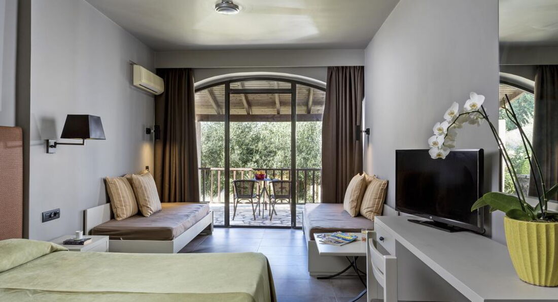 Розташування: 8 км від аеропорту Корфу, 10 км від центру Корфу, 50 м від моря.