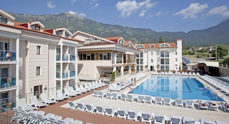 Сразу скажу, что я не хотела ехать в Турцию.Только вернулась из Прованса и не было желание портить впечатления от поездки, но так как у мамы и племянницы не было виз, то выбор был не велик.А на море очень хотелось! Мы смотрели горящие туры и о чудо, нам попался отель в Олюденизе- район Фетхие. Это вообще, не похоже на привычную Турцию.Нет такой влажности, как в Анталии, очень красиво вокруг и море роскошное! Как никак , а Голубая лагуна-национальный заповедник Турции. Небо казалось раскрашенным кисточой, такой цвет красивый.Я такого не видела никогда!Меня не волновало, что море далеко от отеля, так как с нами был ребенок 5 лет, то как правило детям комфортнее в бассейне. Да и от отеля идет долмуш бесплатный и туда и обратно.Все эти движения, как то даже нравились, всегда при деле.))Морской воздух от этого никуда не девается, потому как воздух в Олюденизе в принципе, волшебный!Волосы и кожа не пострадали, как после обычной Турции. В Анталии я еще умудряюсь покрыться аллергическими пятнами,здесь такого не было,зато загар получился роскошный.Красивый цвет!Отель очень хороший!Номера чистые и новые, от всего вокруг было комфортно, все решалось сразу же , если нам это было необходимо и по первой просьбе и с улыбкой и со вниманием.)Это приятно!Питание отличное!Шеф-повар виртуоз!Очень все качественно и достойно!Повара шуршат с утра до ночи. В снек-баре с 11.00 до 16.00 прямо возле бассейна, женщина-турчанка печет на тандыре лепешки с разной начинкой.Это какой-то рай)))мне очень понравилась эта фишка отеля.)Вкусно необыкновенно!В отеле нет русских туристов, были мы и еще семья из Екатеринбурга, которые случайно тоже попали в последний момент.)Только англичане и турки.Поэтому все было очень спокойно и морально мне удалось разгрузиться по полной программе. Умеют же люди и отдыхать и выпивать и веселиться, как-то спокойно.)) Если вы не знаете английского, то вам будет проблемно,лучше не ехать. По русски никто не говорит, вас не поймут! Гида от тез тура мы ни разу так и не увидели))Но и устроились хорошо и улетели тоже отлично!Анимация и т.д. все на английском языке!Но круто и интересно!Для первого посещения Олюдениза, я более, чем довольна!Хочу приехать еще раз!Привет всем с кем познакомились в этой поездке.Юля Санкт-Петербург