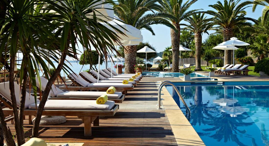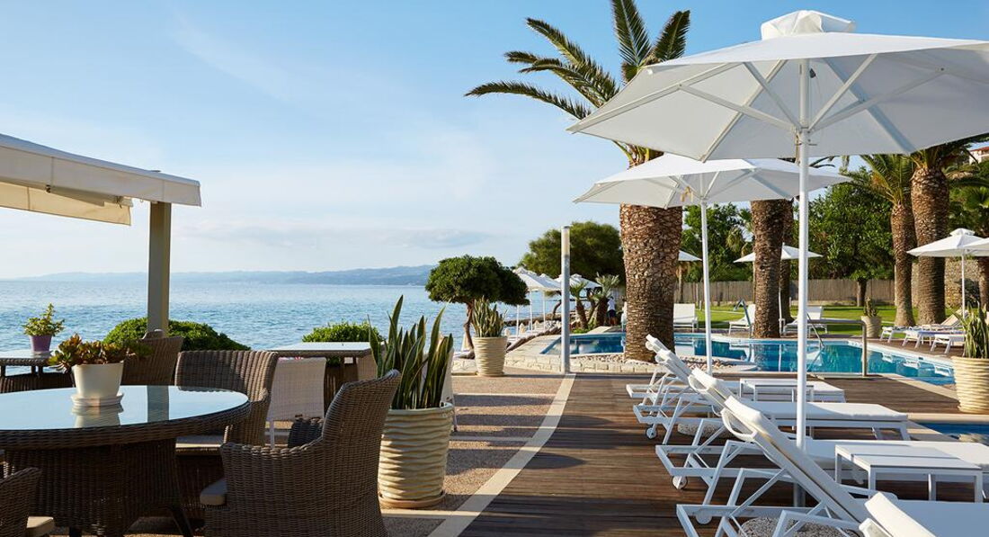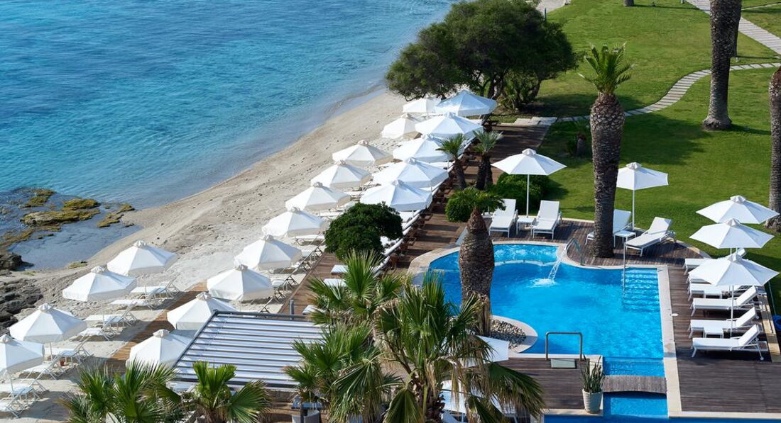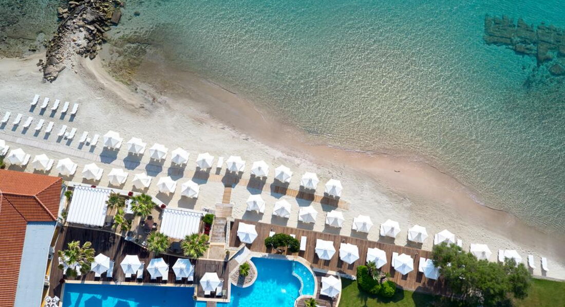 Елегантний готель розташований на березі піщаного пляжу. Потопаюча в зелені територія, просторі світлі номери, чисте море, гарна кухня, привітний персонал. Ідеально підійде для комфортного, спокійного сімейного відпочинку. Оновлено у 2013/2014 pp.