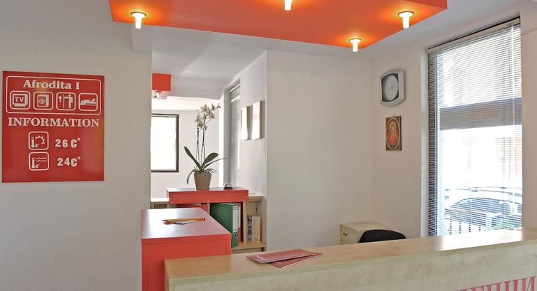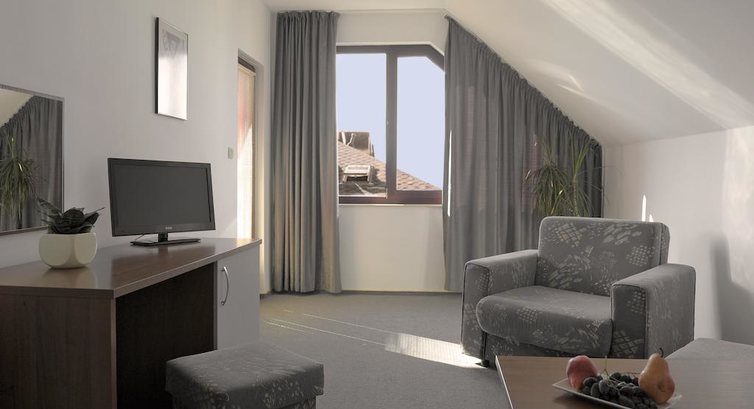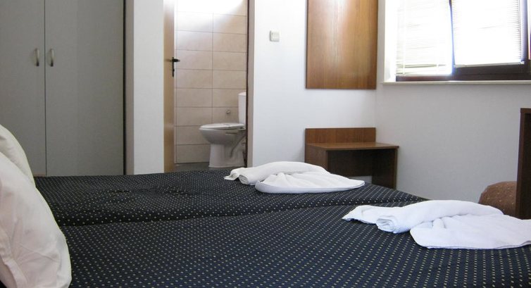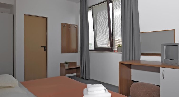• два односпальні ліжка • кондиціонер • телевізор • міні холодильник • крісло-ліжко (може використовуватись як додаткове місце) • ванна кімната з душем • балкон Територія та послуги: • відкритий басейн • ресторан • праска (за запитом) • Wi-fi на лобі • паркування (обмежена кількість місць) • сейф на reception Для дітей: • дитячий куточок • дитяча секція у загальному басейні Живлення: • BB • HB Пляж: 200 метрів до муніципального піщаного пляжу. Парасольки, шезлонги – платно.