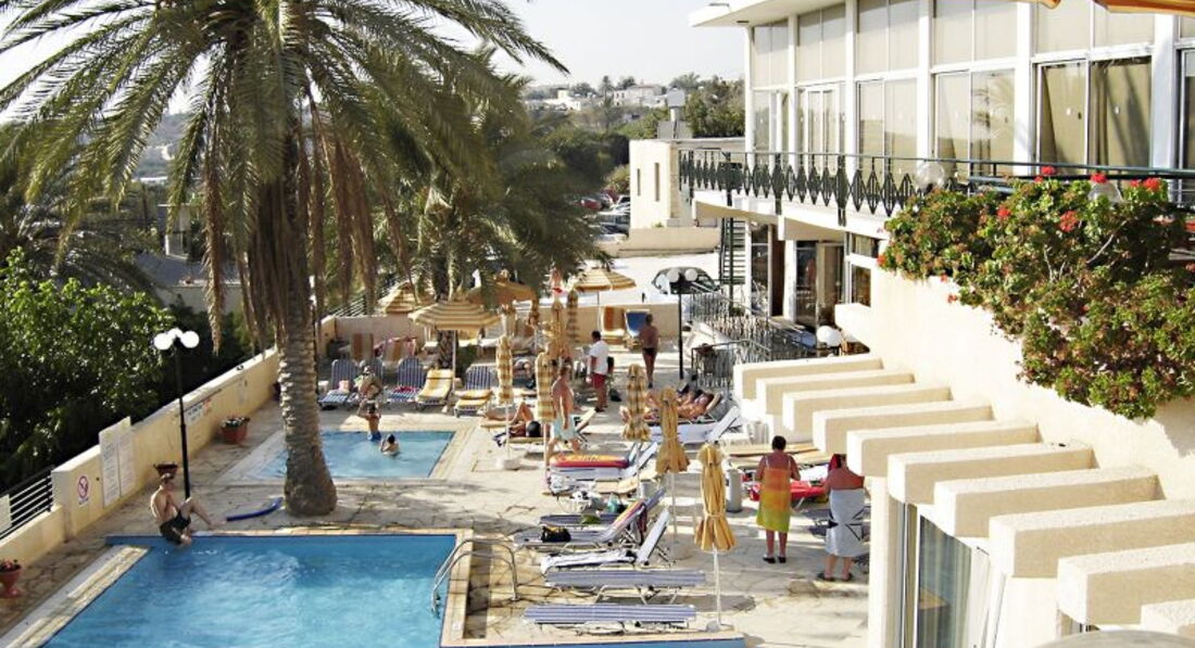 Хороший и добротный отель ! Все в порядке с питанием, чистотой в номерах и отношением персонала. Расположен в 3-х километрах от набережной, идти далековато до пляжа. Но можно подождать рейсовый автобус. Совсем рядом с отелем - рынок и базар. Чуть дальше - автостанция с междугородними автобусами (до Ларнаки или Лимассола). Рядом с отелем улица Апостола Павла, по ней удобно гулять до набережной или Кингс Авеню Молл (большой торговый центр), но нужно любить прогулки , так как достаточно далеко. У отеля есть небольшой бассейн, рядом с ним растут банановые пальмы :)) Есть и своя парковка для автомобилей. По поводу питания - завтраки всегда стандартные - омлет, яйца, зелень, фасоль, сосисочки, сыр, колбаса, мюсли, джем, мед, йогурт сметанного типа) и напитки (утром бесплатно). Ужины - супы-пюре, мясные блюда, салаты, гарниры различные (Напитки вечером платно). На нашем этаже был отличный вид из номера прямо в сторону моря, каждый вечер красивый закат. Вечерами люди спускаются в бар, где коротают вечера со стаканчиком алкоголя. Также многочисленные англичане, в основном солидного возраста, любят петь в караоке, что тоже нам понравилось ).
