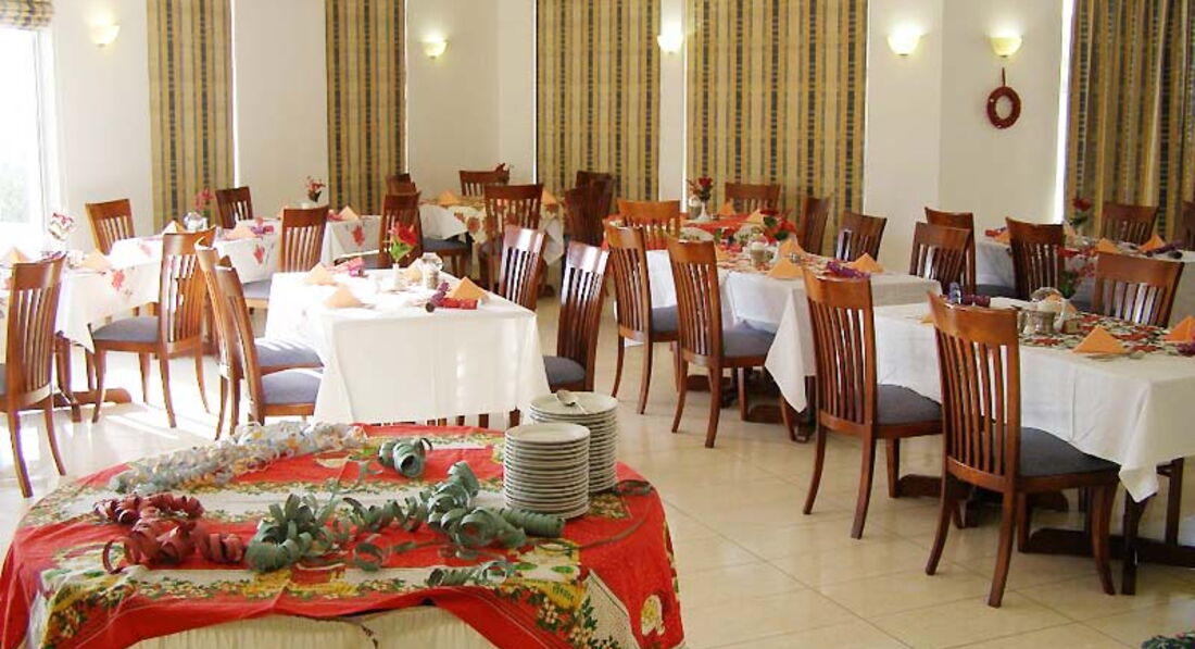 На завтрак одно и тоже постоянно: омлет или вареные яйца, жареный бекон, фасоль, сосиски, 2 вида колбасы, один вид сыра. достойным был местный сыр халуми, нарезанные огурцы, маргарин, из фруктов свежие апельсины очень сладкие и вкусные, консервированные ананасы, в один день были забродившие, три вида хлеба, который можно поджарить в тостере, три вида сухих завтраков, кекс и 5 видов джема, мед, слойки не понравились так же как и кекс, все безвкусное..... из напитков кофе, чай, какао, молоко, соки из автомата. На ужин: 5 видов салатов, все не соленое и безвкусное....соусы тоже не понравились, оливки и маслины были достойные, из мясного только два вида, курица была постоянно, рыбу давали один раз, картофель во всех видах, один раз была мусака, овощи отварные, суп, три вида десертов, из фруктов арбуз и иногда апельсины. Еда не понравилась, все постное безвкусное, выбор маленький, за питание ставлю 3, очень редко попадались вкусные блюда, так же некоторые десерты были вкусные, арбуз так же бывал сладкий, но в основном все ела без особого удовольствия..... На ужин напитки платные, бокал вина стоит 2,8 евро, бутылка воды 1,3 евро, сок 2,0 евро.