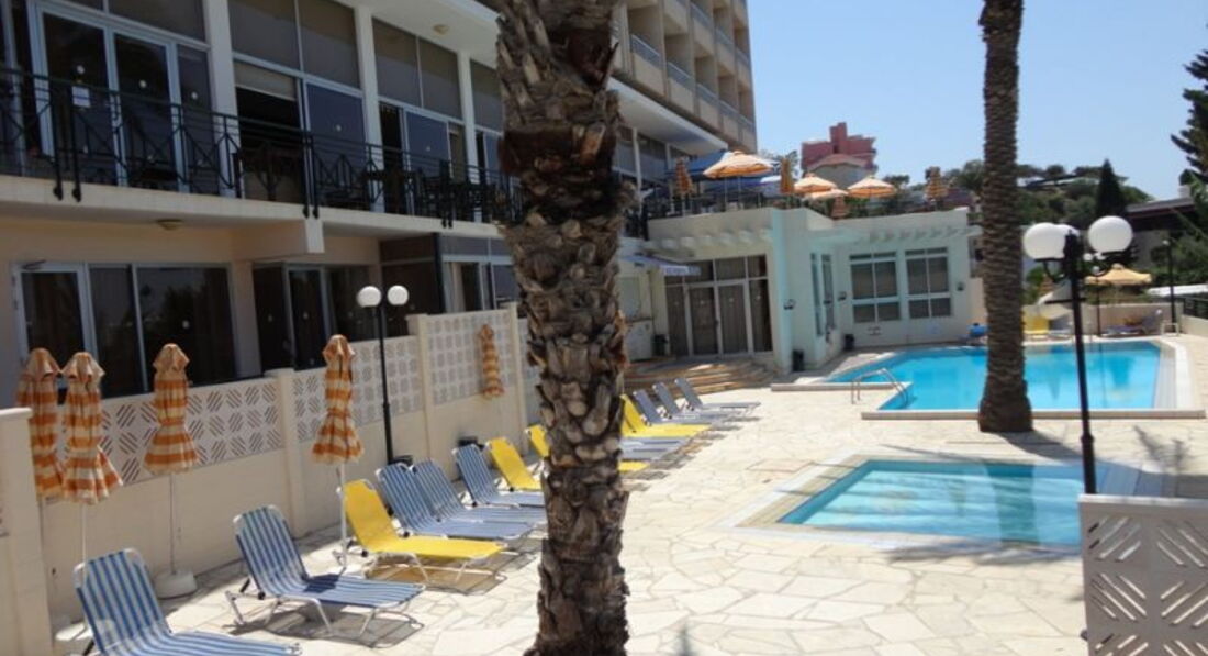 Ну что хотелось бы сказать о данном отеле , отдыхали с женой вдвоем в июне 2017 года. ХОЧУ ОТМЕТИТЬ ЧТО КИПР ПРИЗНАЛИ КУЛЬТУРНОЙ СТОЛИЦЕЙ ЕВРОПЫ ПОЭТОМУ В КАЖДОМ ГОРОДЕ ПРАКТИЧЕСКИ НА КАЖДОЙ УЛИЦЕ ВЕДУТСЯ РЕМОНТНЫЕ РАБОТЫ КРУГОМ ПЫЛЬ И ГОРЫ СТРОИТЕЛЬНОГО МУСОРА. С размещением проблем не возникло все быстро и без всяких задержек. Зайдя в номер сразу бросается в глаза ковролин на полу который явно не моется а только пылесоситься. Балкон номера у нас выходил на дорогу поэтому если мы его открывали то слушали как ведутся работы по благоустройству города, ну один раз повезло вообще конкретно напротив нашего отеля был магазин к которому приехала рано утром ассанизаторская машина и мы насладились ароматом кипра по полной. КОНДИЦИОНЕР?????Забудьте!!!! они работают только тогда когда они сами захотят , а точнее 2 -3 раза в день! Ночью душно ,днем душно. Убирались в номере каждый день ,полотенца и постельное белье за 10 дней поменяли только 1 раз. Персонал в целом добрый и отзывчивый, однако бывают такие ситуации в которых видно как относятся к русским а как к европейцам. Брали в аренду сейф 15 евро , хотя иногда оставляли электронику и деньги на тумбочках , все оставалось целым . Интернет тоже не дошел до этого отеля, когда вечером весь отель спускается в бар можете даже не пытаться зайти в соц сети про видео связь я вообще молчу , в номере он за отдельную плату но мы его не брали. Бассейн открывается в 9:00 и закрывается в 18:00 в воду прыгать нельзя распивать напитки в бассейне тоже , однако иностранцы охотно делали и то и другое да вдобавок в детском бассейне курили и распивали спиртное и в их сторону не поступило ни одного предупреждения или замечания, когда русский мальчик прыгнул в бассейн на него обрушился шквал возмущения. На ресепшене сидел молодой человек которому абсолютно по фигу что вокруг него происходит , сидит слушает музыку отрешенный от всего , сдавали ключ от номера так он его и брать не хотел потому что ему лень а может быть и не хотел. То что вы покупаете в магазине воду или другую еду запрещается кушать и приносить в отель, но в номере можно. По питанию претензий нет, готовят вкусно, много, хватает всем, но картошку мы теперь точно год есть не будем, потому что на там всегда)))) , слава Богу только не на завтрак. До моря если пешком то 3 км. но мы ездили на автобусе благо остановка рядом с отелем . Этот отель три звезды и он их достоин , но ребята есть и хуже поэтому мы отдыхом остались довольны , но персоналу нужно по дружелюбнее относиться к русскоязычным жителям своего отеля .