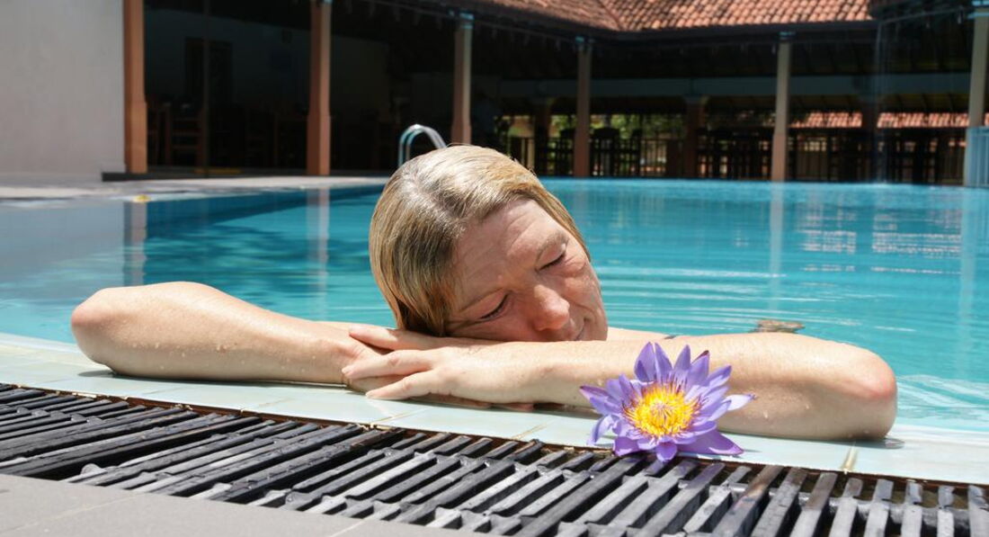 Територія та послуги: • відкритий басейн • основний ресторан (міжнародна кухня, аюрведичне меню) • бар • wi-fi на території • автопарковка • сад та тераса на території • обмін валюти • виклик лікаря (платно) • пральня (платно) • магазини Розваги та спорт: • центр аюрведи • аквааеробіка • йога • детокс-програми • масаж • сауна • рибна ловля • водні види спорту Живлення: FBT – сніданок, обід та вечеря + аюрведичні процедури. В оздоровчий комплекс входить: • 1 подорож до храму • 1 village tour • 4 консультації лікаря • 4 групові заняття йогою • 1 кулінарний майстер-клас • 4 заняття з медитації • трав'яний чай у необмеженій кількості • 2 пляшки питної води на день • свіжі фрукти на сніданок Пляж: Громадський піщаний пляж за 400 м від готелю. До оплати приймаються кредитні картки: Visa, MasterCard, AmEx.