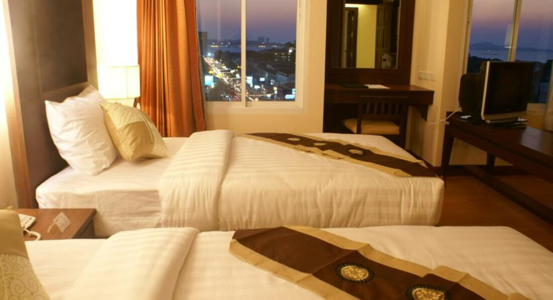 Отель хороший, жили в номере на последнем этаже 701, панорамный вид на всю Паттайю, сервис хороший, прибирались каждый день, завтраки похожие на обед, мясо, сладости, фрукты, соки, гарниры, короче, очень даже хорошие. Единственный минус - муравьи, но они меня вообще не напрягали и появлялись только при виде пищи, фруктов, а так все тихо :)