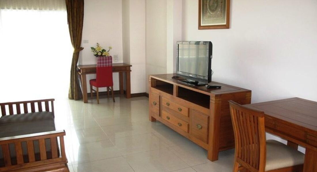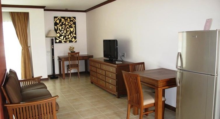 От пляжа недалеко и очень удобно т.к. идете через улицу на которой расположены массажные салоны - мимо точно не пройдете :). Удобно на углу отеля ловить тук-тук идущий в центр к "Тукком" (супермаркет техники) и Вокингстрит. Также недалеко от отела ночной рынок "Лотус". Друзья жили на северном Джомтьене - вот это точно пикуля... Иногда ходили ужинать рисом с курицей к тайцу, который торгует рябом с Фемелимаркт, который через дорогу от отеля. ОЧЕНЬ вкусно!!!! Сотовый оплачивали тоже в Фемелимаркт. Ничего объяснять продавцам не надо - даешь телефон и денюжку и девчушки сами все делали. Понравилось все, кроме обслуживания на рецепшене... делают вид, что русских практически не замечают (в отличие от немцев и англичан). Еще такое же отношение было к китайцам, но там уже другая история :) Увидите китайцев - сами все поймете. Вода горячая в номере была круглосуточно. Сейф был в номере, работал исправно. Но даже когда забыли убрать видеокамеру и фотик- ничего не пропало. (может просто повезло), но при нас случаев воровства из номеров персоналом отеля не случилось. В номере была небольшая кухня: раковина, плитка (см. фото). Неплохой отель с уютной территорией и прекрасным расположением (кстати, практически во всех номерах есть балконы) что немаловажно для влажного воздуха в Паттайе.... В общем советую всем!!!!!!!!