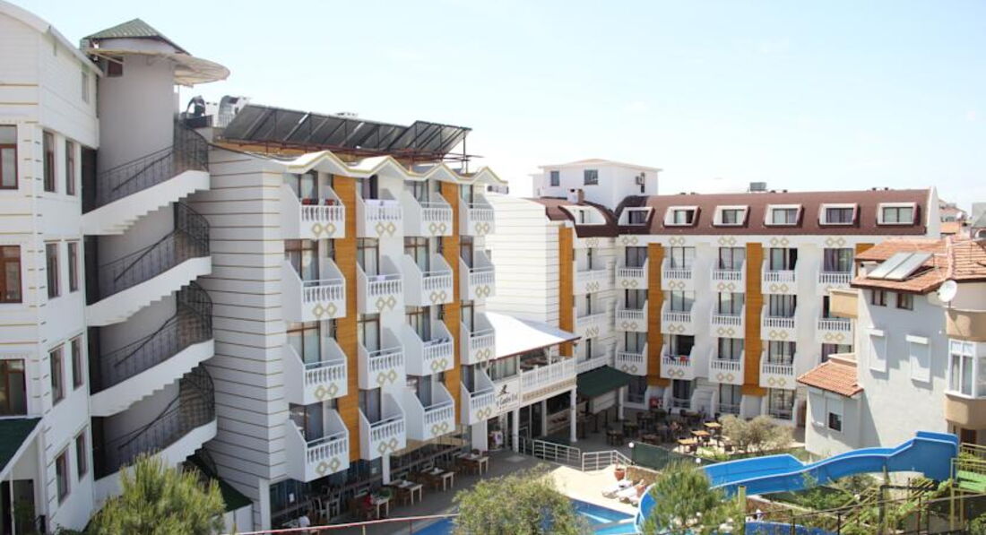 Отдыхали в отеле в конце сентября. В Турции не в первый раз, путешествуем давно и очень любим ездить в разные места. Отель зацепил своей непринужденностью, чистенький. спокойный и какой то домашний! Хороший доброжелательный персонал, неплохая кухня,голодными точно не будите. Симпатичная территория, есть горка и детская площадка, теннисный и бильярдный столы. До моря идти минут 10, пляж прекрасный, заход очень хороший! Лежаки по 2 доллара., но можно лежать просто на полотенце, что многие и делают.Советую отель для семейных пар, не привередливых туристов! Езжайте не пожалеете! За небольшие деньги вы получите прекрасный отдых!!!