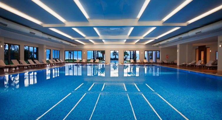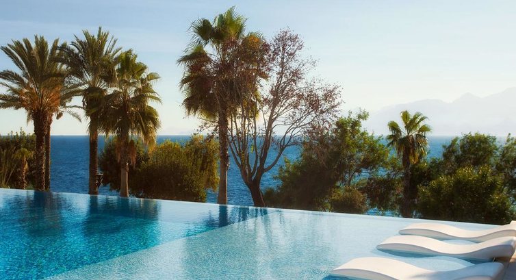 Территория небольшая, приватная, свой кусок моря с крутым берегом и живописным спуском к морю. Пляж – очень приличная бетонная платформа с лежаками и зонтами, спуск в воду по лестнице (как в бассейн). Есть ощущение, что на эту зону у отеля не хватило времени для обустройства, впрочем, бирюзовое чистейшее море и живописность места не позволяют надолго об этом задумываться. Три открытых разноуровневых бассейна, один из которых – панорамный с зоной лежаков на воде. Подогреваемый закрытый бассейн с огромными окнами, переходящий в небольшую открытую зону (необходимо поднырнуть). У отеля есть всевозможные программы СПА, цены начинаются где-то от 2500 евро (4 дня).