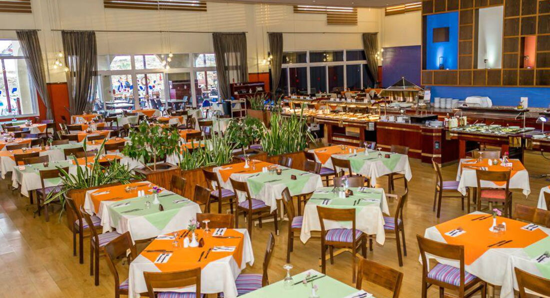 Менеджер ресторана (хотя я бы это назвал провинциальной столовкой) ни разу не встретил на входе и не предложил удобное место для посадки… Официанты ходят в грязных блузках и рубашках. Страшно не опрятные, это кстати, относится ко всем сотрудникам отеля. За ужином официанты делают вид что не замечают Вас и дождаться прохладительных напитков не реально!!! Если только на них «не гаркнешь». Меню ресторана скудное и не вкусное. Я бы даже сказал меню примитивное. Основные блюда не вызвали удовольствия, во время трапез. Спасают только свежие овощи, оливки и сыр!!!! Но это заслуга не менеджеров отеля, а заслуга благодарной Кипрской земли.