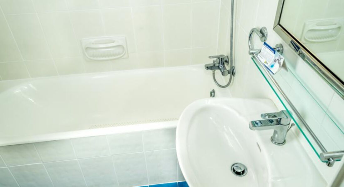 Ванная комната, напоминают советскую общагу. Все отваливается, вода идет то холодная то горячая, инженерные коммуникации едва живые, кафель отваливается… Вентиляция не работает.
