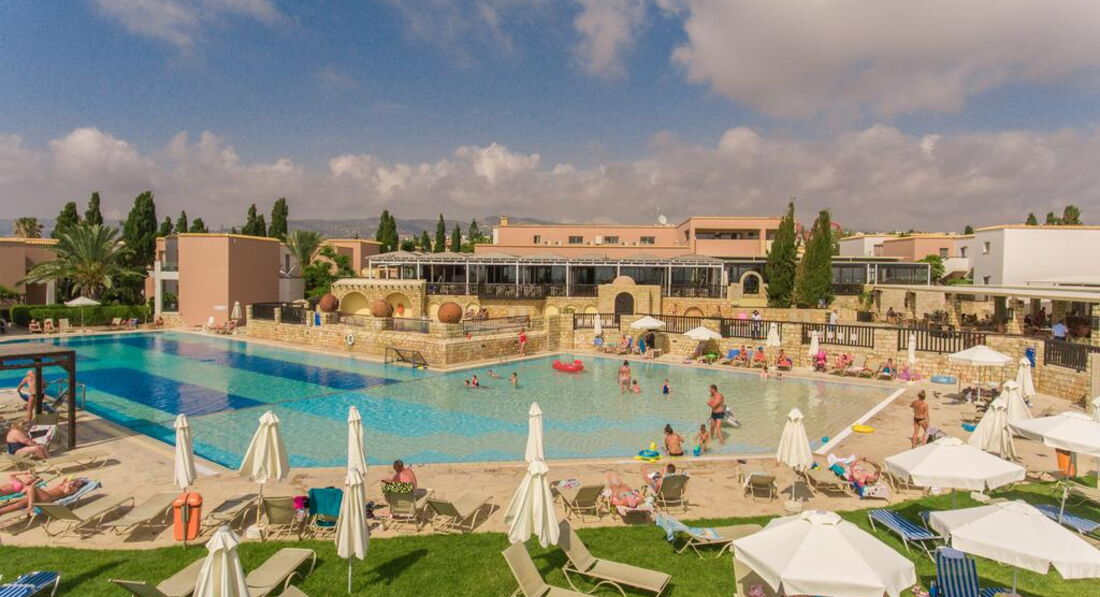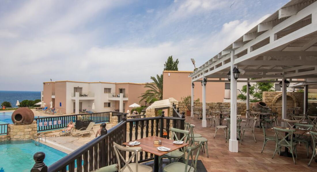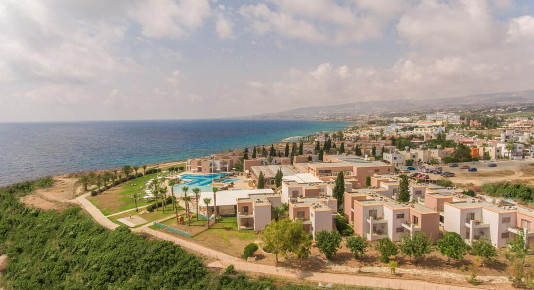 Готель розташований у Верхньому Пафосі, на березі моря, за 10 хв їзди від центру міста. Готель розташований на березі моря в районі Хлораку. Пропонуються номери з видом на сад або море, гості можуть відвідати бар і ресторан, один критий і два відкритих басейни. Для дітей передбачено цікаві розваги. Просторі апартаменти готелю мають терасу або балкон. На території є тренажерний зал і тенісний корт. У ресторані є столики на веранді, в ньому подають страви кіпрської та міжнародної кухні. У барі пропонує широкий вибір вин та коктейлів.