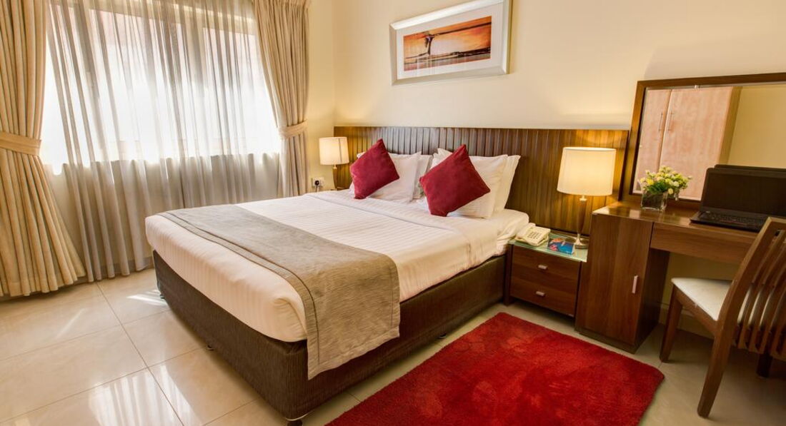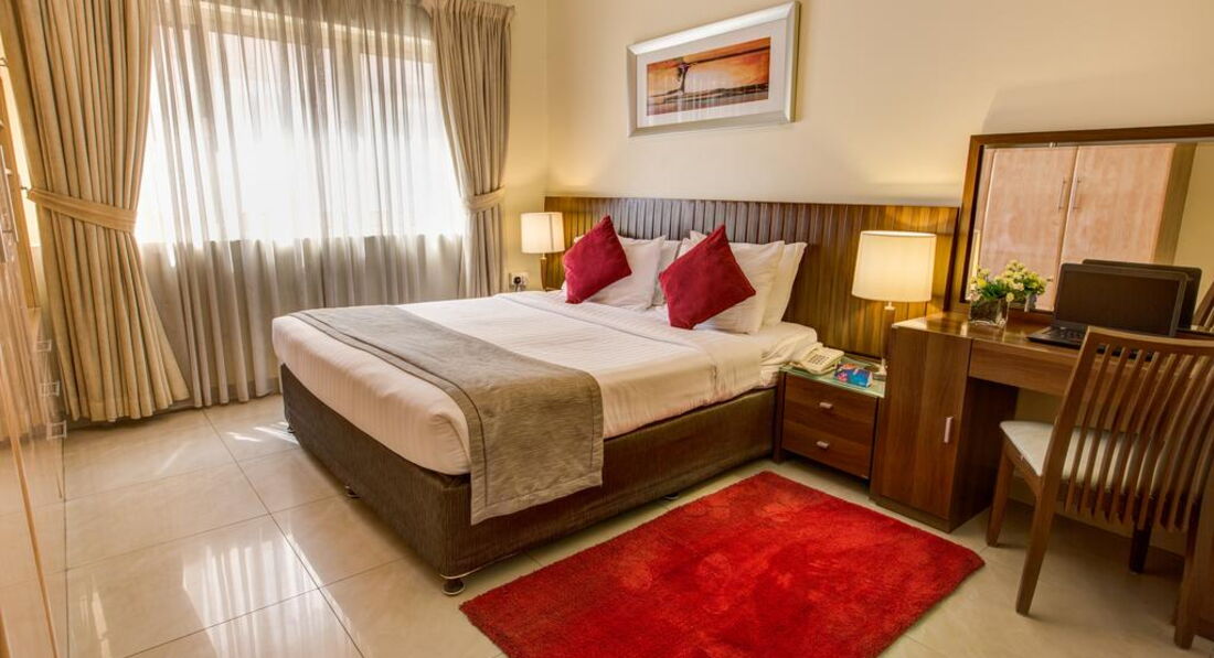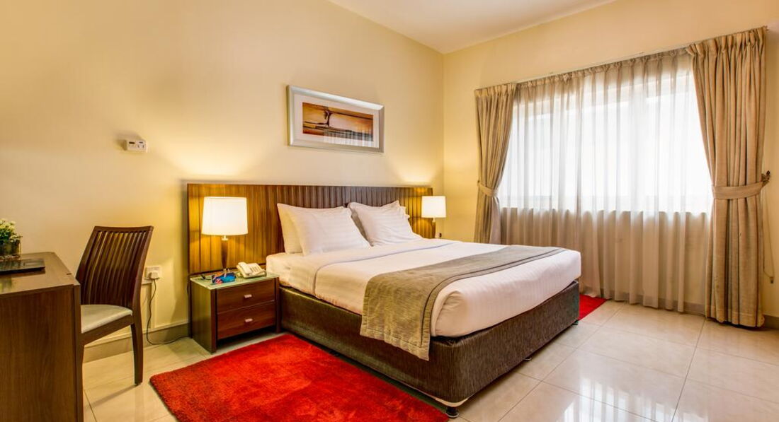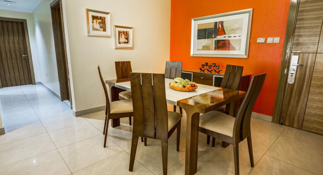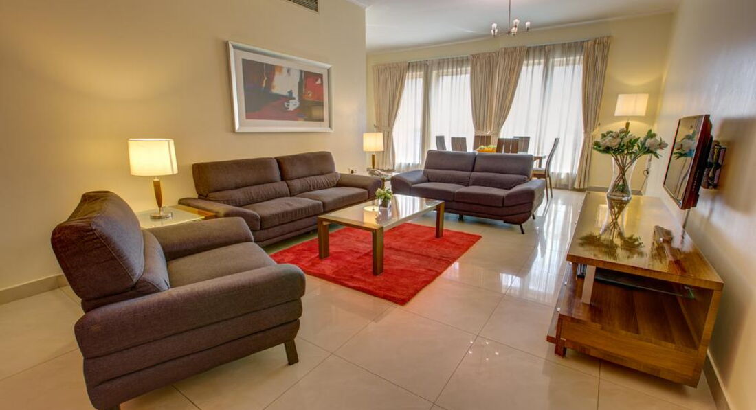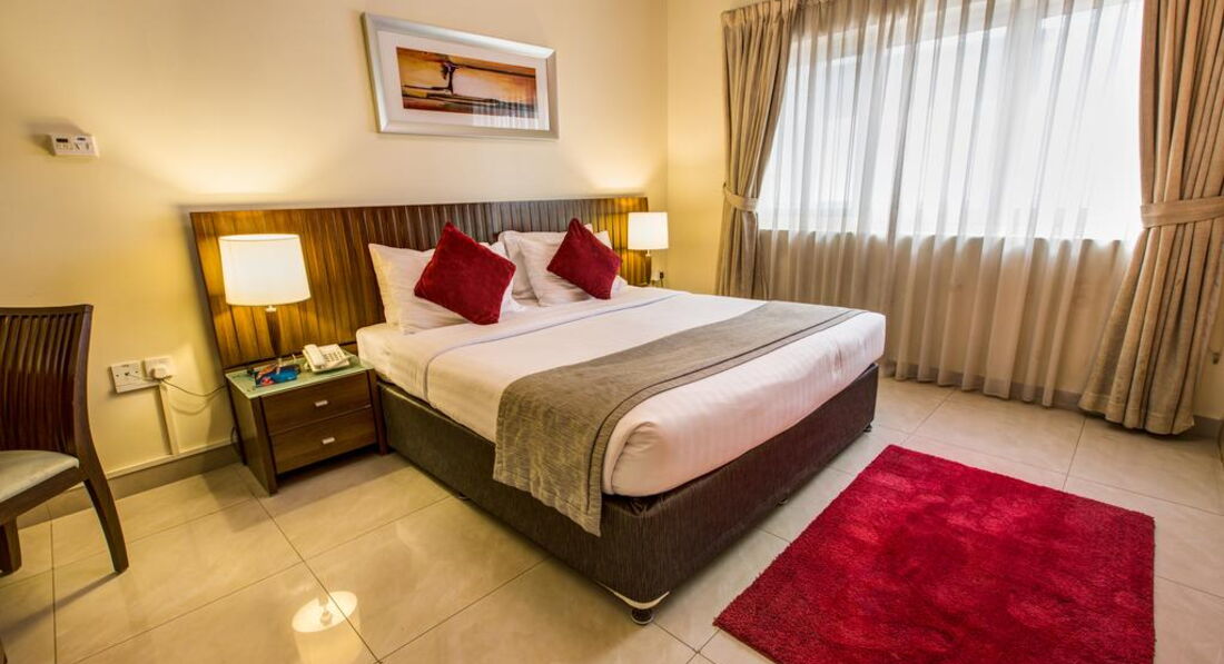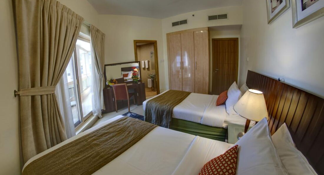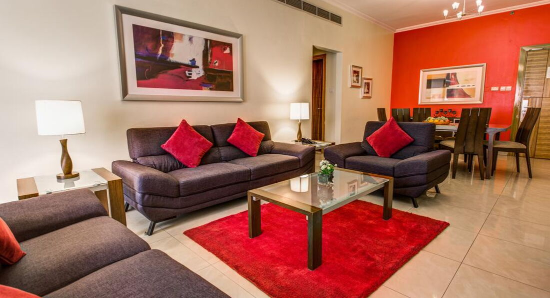 Типи номерів: • 30 One Bedroom Apartment -площа: 75 кв.м., максимальне розміщення 2+2, одна кімната, міжкімнатні двері, вітальня, кухня, ванна кімната, балкон, вид на місто. • Two Bedroom Apartment -площа: 100 кв.м., максимальне розміщення 4+2, дві кімнати, міжкімнатні двері, вітальня, кухня, 2 ванні кімнати, балкон, вид на місто.У номері: • балкон • кондиціонер • Wi-Fi: безкоштовно • кухня/кухонний блок • ванна/душ • санвузол • пральна машина • міні-бар • TV: супутникове • DVD-плеєр • CD-плеєр • телефон • сейф у номері • фен • холодильник • праска, прасувальна дошка • MP3 / радіо / будильник • письмовий стіл