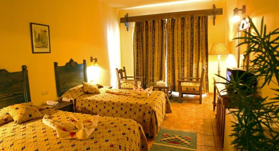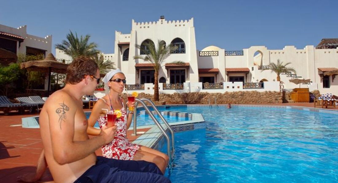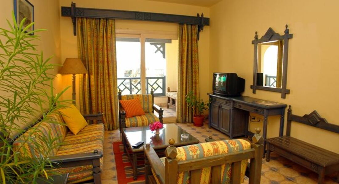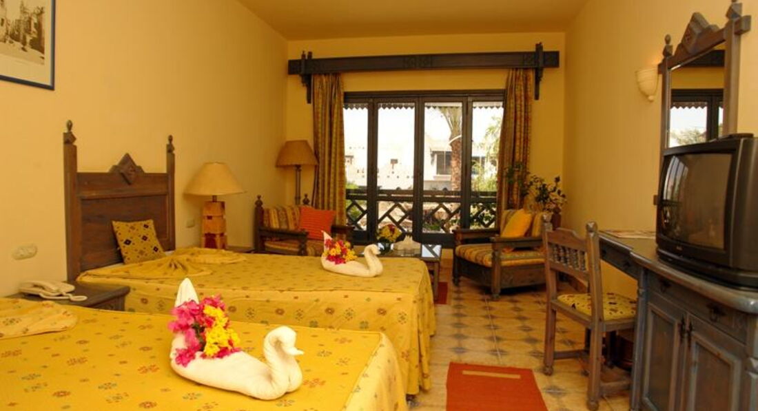 Начну с минусов отеля: в номерах либо не убирают, либо убирают очень плохо, грязные полотенца, за весь наш отдых ни разу нам не почистили пепельницу....Пару раз возвращались в отель а дверь номера открыта и свет горит...вот такой вот персонал заботливый. Еще минус: расположенность по отношению к городу, выйти из отеля некуда, только ехать (можно на маршрутке, минут 10, за 6 фунтов за двоих), вокруг отеля мусор и смотреть за периметр отеля неприятно. Бассейн грязный, в нем всегда плавает мусор, постоянно не хватало лежаков, матрасов, в новогодний банкет не хватало тарелок, в автобусе, который возит на пляж не хватало места. Полное отсутствие аниматоров. Пляж в минутах 10 на автобусе, расписание неудобное, но мы ходили пешком...дорога прямая, ровная, идти не напрягает. Это основные минусы отеля.