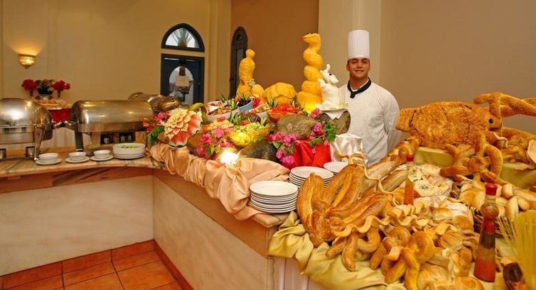 На завтрак все стандартное: яйца вареные, жареные, мюсли, джем, булки, какието сладости нормальные, рис, фасоль, огурцы, помидоры, перец, сосиски и еще какаято фигня, кот.мало кто ест, но в целом голодными вы не будете, но под конец недели такое питание конешно же надоест.