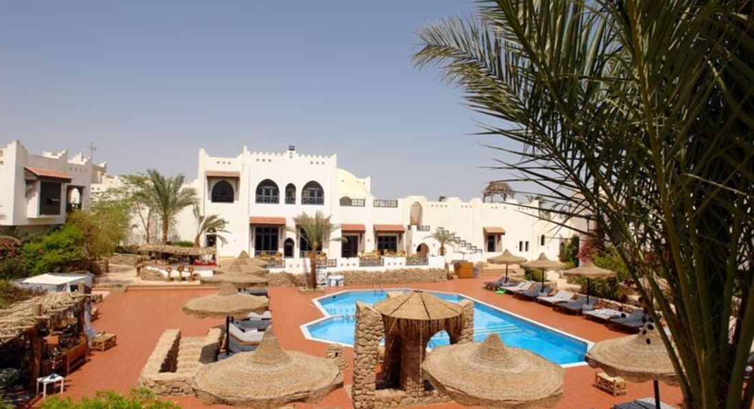 Отель находится недалеко от а/п, минут 15 езды, рядом(2км) с бухтой Шаркс-Бей.На пляж строго по графику в 9,10,12,14,17 часов и обратно соотв.через10 мин ходит минивэн.Народу сейчас мало, места всем хватало,ехать 3 мин.,пешком 25-30 мин, пляж тоже свободный, я на 3 лежаках располагался, чтоб поворачиваться вслед за солнцем.Море теплое, 23-25 градуса, воздух тоже теплый 28-30, но после 16-00 уже чувствуется прохлада с моря.Заход в море удобен для всех, включая детей- песчаный, плавное углубление, спец.обувь не требуется.Плавать с маской отлично сразу и дальше вдоль рифа, множество разноцветных рыб и кораллов и на глубине за обрывом и на мелководье,на котором вполне удобно и интересно плавать начинающим,глубина 0.5-1м в зависимости от прилива-отлива.Маска и трубка в лавке на пляже стоит 8$, в Наама-Бей(куда я съездил за 2 фунта в один конец,10 мин.на маршрутке) - 3-5$ . В отеле все пристойно,номер просторный, кондиционер,холодильник,сантехника -все рабочее и в хорошем состоянии,ТВ показывает 1 русский канал(Россия-Планета) в плохом качестве,но новости послушать можно.Питание нормальное, стандартное для Египта,хорошего качества и выбора для 3*,шведский стол без ограничений,никто не жаловался на желудок.Воду для питья и даже полоскать зубы после чистки лучше покупать,тогда проблем не будет.Персонал приветлив и дружелюбен, пропажи вещей и воровства не замечено.Развлечений ни в отеле,ни рядом с ним никаких, вечером гоняют музыку- желающие компании устраивают себе танцульки.2 раза в неделю бесплатные поездки в Наама-Бей для развлечений, но поздновато, в 20-30 до 23-30.Невдалеке самолеты заходят на посадку,но как-то не очень досаждают,не замечаешь уже на второй день.В общем тихий спокойный отельчик для размеренного отдыха,годится для уставших от суеты людей за 50, семейных пар с детьми, одиночек,желающих пожить в уединении, расслабиться.А главное достоинство Египта- солнце- море-постоянное лето-доступные цены и спокойная дружелюбная обстановка - все есть по-прежнему, так что можно ехать и отдыхать, я проверил и рекомендую.А отель выбрать уже по своим запросам- не проблема.