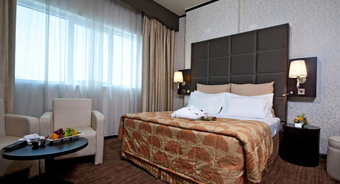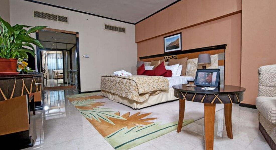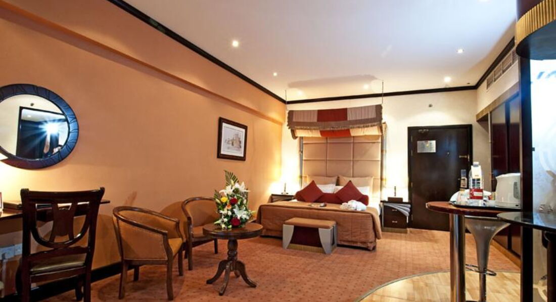 Отличный городской отель, трое взрослых - жили в большом 2-ух комнатном номере. Питание- достойное: завтрак стандартный - выбор неплохой,сытно,отличный кофе из кофемашины и свежайщая разнообразная выпечка. В этом отеле однозначно стоит брать полупансион - с обедом - готовят просто отлично,с душой!понравилось,что повар часто выходит в зал и интересуется,все ли было вкусно - это очень приятно. Хороший выбор рыбных и мясных блюд - приготовлено идеально,разнообразные гарниры. Блюда моментально пополняются по мере необходимости. Хорошие дессерты. В номере,лично у нас,убирали каждый день - и качественно,обувь аккуратно поставят,вещи - аккуратно свернут,косметику сложат аккуратно,если валяется) хотя чаевые хоть и оставляли,но не каждый день. Номер был с хорошей добротной мебелью,с белоснежным бельем. В номере мини-бар,чайник и чай/кофе/вода бесплатно. На ужин в основном ходили в Golden fork - я всегда брала морепродукты-гриль - обалденные,попробуйте именно там!Большая хорошая полция на одного человека,для двух мало - свежайшие и приготовлены именно так как надо,не пересушены. На мой взгляд район Дейра - не самый удачный,далековато ездить до центра,и очень много выходцев из Индии,Ирана и Пакистана. В общем и целом - отель рекомендую,весьма достойно за свои деньги!!!