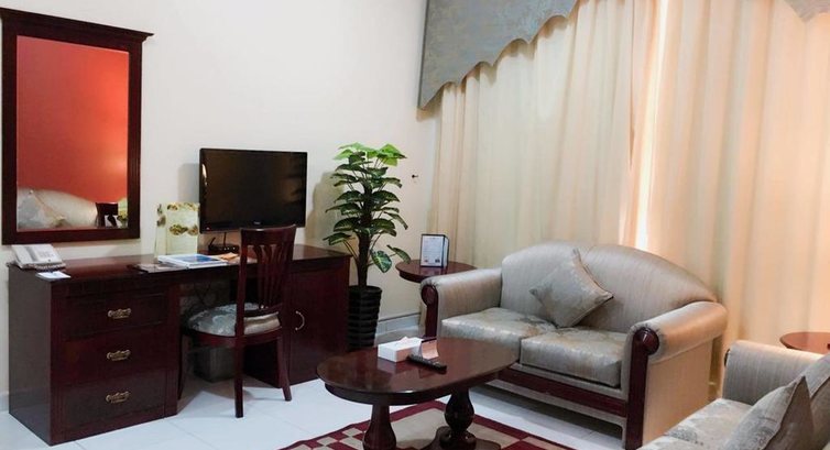 Отель предоставляет гостям бесплатный трансфер в аэропорт Шарджи. Мелочь, а приятно. В стандартных номерах есть маленькая кухня с электрическим чайником и посудой. На ресипшен, кроме англоязычного персонала была русскоговорящая девушка. При этом в номере телевизор с кабельным телевидением, где нет русских каналов. Рядом находиться мечеть короля Фейсала и дом правительства Шарджи. Персонал отеля доброжелательный. Перед отелем много обрывков бумаг и мелкого мусора. Рядом стройка здания, которую слышно если открыть окна.