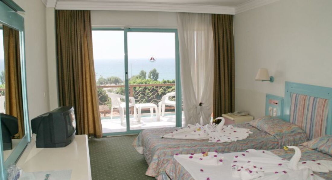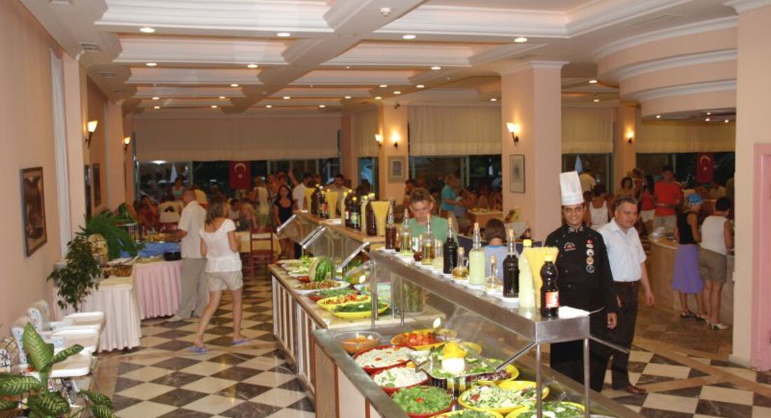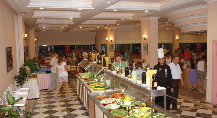 Читала чужие отзывы уже после приобретения путевки. Очень расстроилась... Обидно было не сколько за себя, сколько за своих подруг, которых уговорила в первый раз съездить в Турцию. Пока не приехали в отель... Заселили почти сразу. Успели только сходить на обед. Номер нам сразу понравился. Работало там все: и телевизор, и кондишен, и минибар охлаждал и в ванной было все нормально. Убирались каждый день. Меняли белье через каждые три дня. У подруги даже каждый день, потому как после неудачной покраски волос пачкалось полотенце очень быстро. Еда для меня и моих подруг была вполне нормальной. Каждый день была птица и рыба, и фрукты. Очень понравились лепешки, которые пеклись на полдник. На них мы специально убегали с пляжа.
