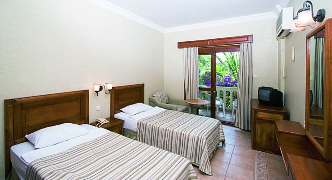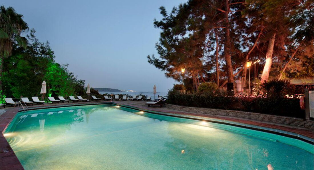 Заселили за 5 минут. Сразу выдали пляжные полотенца и браслеты. Номер в двухэтажном здании с видом на бассейн и море был потрясающий. Все работало. Во время всего отдыха убирали, приносили ежедневно воду, мыло. В первый день сидели в баре и у мужа выпал из кармана телефон. С утра его нашли и вернули -огромное спасибо порядочным работникам отеля. Отличный бар у бассейна, есть Wi-Fi, приветливые бармены по сто раз спрашивают "Как дела?" и улыбаются. Территория невероятно красивая, все цвело. Правда видели мы умирающие кактусы исцарапанные туристами своими автографами. Каждый плебей должен написать - "Здесь был Вася". Пляжей 2. Вход в море отличный но нырять не интересно. Рыб почти нет а дно скрывает песок. Хороший бассейн, но не глубокий. Питание разнообразное, от европейской кухни до турецкой. То что любят узнавать все - мясо и рыба на каждый день в разных видах. Правда рыба не всегда была удачно приготовлена.Овощи, фрукты и все блюда в таком разнообразии что тяжело выбрать. Для детей и взрослых мороженное с 14 до 16. Ели мы конечно в Аларе Стар, поскольку кризис коснулся отеля. Но у нас был ресторан по записи. Шикарное обслуживание и мясо на гриле. В середине отдыха появилось в ресторане неплохое вино. Вначале отдыха было мало людей, и уже к середине сентября их стало много. Из стран СНГ, много турок и много немцев. По отелю ходит Лукум - собака умершего хозяина. Его кормят со столов, он стал кругленький и его очень жаль. Настоящий сирота. Если выйти на трассу - справа минутах в сорока поселок Авсалар. Целая улица магазинов и кафе, цены в связи с не приездом россиян очень упали что огорчало турок и радовало нас. Минус один - ресепшен где сидят турки не знающие даже английского. Списки об отъезде вывесили непосредственно перед тем как выезжать из номера. Когда я показала билеты и спросила где автобус, он мне стал показывать что нам выезжать 18 сентября, хотя на самом деле 11 и мы стояли перед ним с чемоданами. Тогда он предложил сходить в Алару Стар. Когда я разозлилась он все понял, подхватил чемодан, нашел автобус и посадил. Так что все закончилось хорошо. Очень хочу еще приехать, невероятная атмосфера отеля. Сочетание живой природы, запаха сосен, прогретой соленой воды... Не даром немцы любят этот отель.