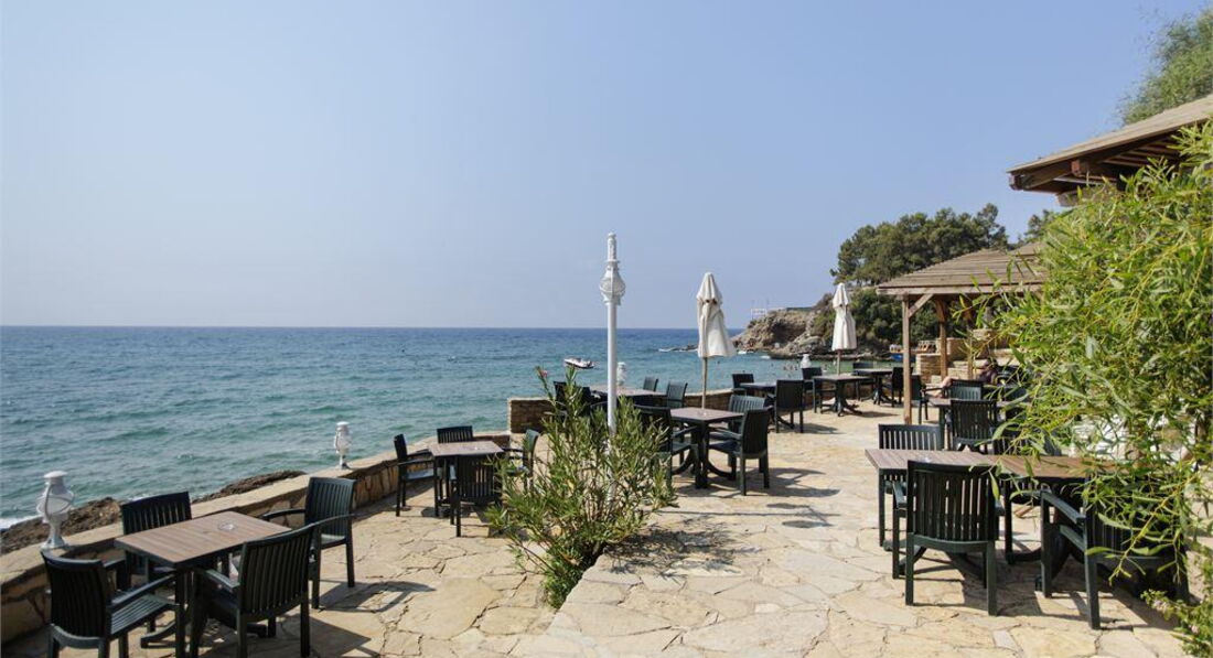 Нам рассказали про немку, которая ездит в этот отель уже 20 лет, и я честно сказать, ее понимаю. Мне этот отель смутно напомнил пансионаты в Абхазии или Аджарии времен позднего застоя, но только с качественным сервисом. Поэтому смело рекомендую его тем, кому за 30+, за 40+ и так далее. А море тени, песок и мелководье в бухте будет удобно мамочкам с маленькими детьми.