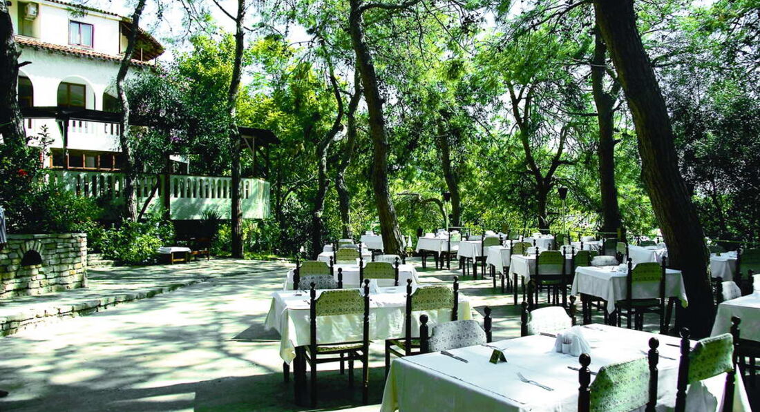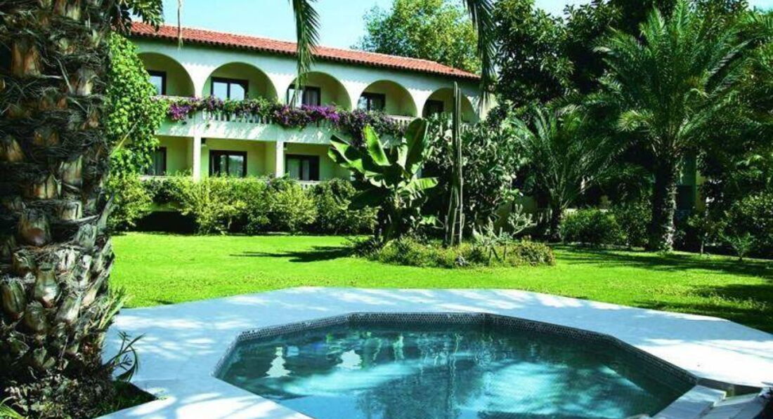 О существовании этого отеля я не догадывался, но каждый раз, приезжая на день поплавать на Инжекуме, смотрел в эту сторону и видел зеленый сад на холме. При выборе отеля в этом году главным аргументом было проверенное побережье (У нас уже был до этого пляж-подстава в Канаклах) и все мои согласились поехать в Алару, зная, что даже если отель с косяками, то уж море не подкачает. И это было правильным решением, дорогие товарищи. Что можно сказать об отеле. Он из тех четверок, которые, как джокер, кроют козырные пятерки. На наш вкус так просто супер. Нет шума и суеты, в любое время суток есть места для уединения: кому почитать, кому помечтать - всем найдется красивый уголок. Для тех, кто любит селфи или семейные фото на фоне чужих красот у отеля конкурентов просто нет.