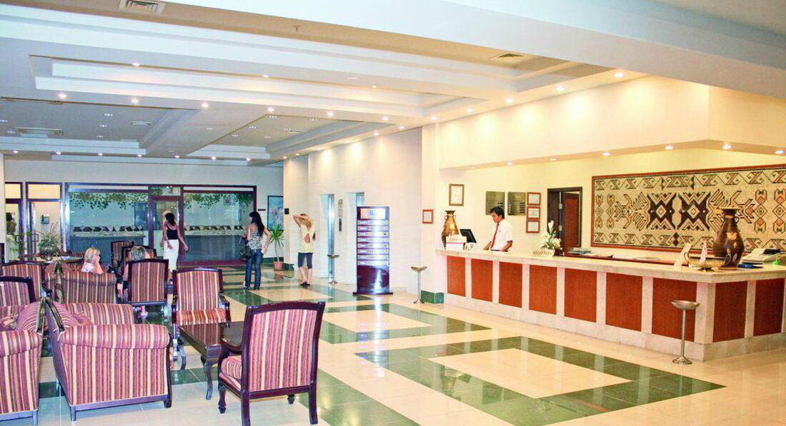 Мы приехали в отель в начале сезона. Основная публика была: семейная аудитория и пенсионеры. Заселили нас буквально в течении 20 минут. По еде: всего хватало, мясо, нарезки, йогурты, супы. Т.к. было начало сезона, то фруктов было не очень много. Море было прохладное +21, погода - только один раз прошел кратковременный дождик, потом с каждым днем было все теплее. Аниматоры старались даже не в сезон развлекать - днем в детском уголке, вечером - дискотека, конкурсы. Бары работали исправно, никаких скандальных туристов не было. Про уборку. В первые 2 дня никто не убирался, потом убирались каждый день, полотенца меняли исправно, 2 раза меняли постельное белье. ТВ, душ - все работало. Фен был неисправен - его заменили на второй день. В хаммаме, если не через приставучего гида, то на 5$ дешевле. Все отлично! Если не придираться, а ехать с целью отдохнуть - то отель невероятно хорош! Остались самые лучшие воспоминания!