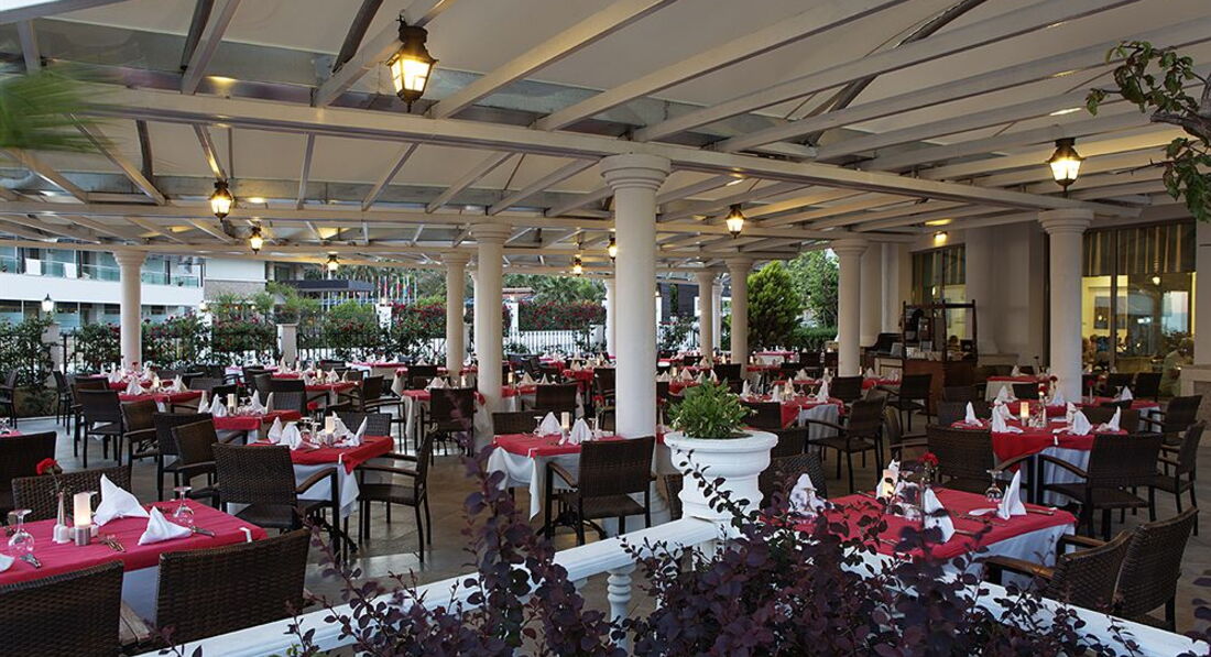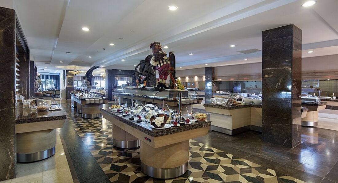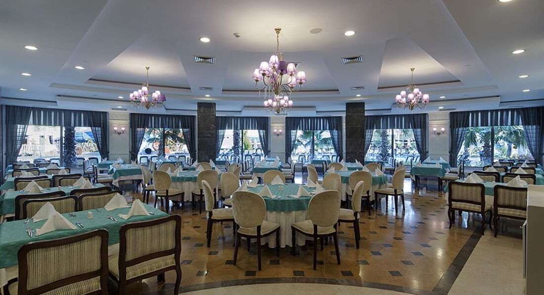 Отель не 5, а 4 звезды я бы сказала. С уборкой халявят, полы ни разу не мыли, только пылесос, полотенца не меняли по три дня, даже если оставляешь чаевые, в ресторане официанты показывают все своим видом, как они любят немцев и англичан и как им все равно на русских, лишний раз тарелку не уберут! Скатертей на столах нет, салфеток тоже можно сказать нет, по выдаче одна салфетка на человека, и это 5 звезд! Еда разнообразная, НО детское меню - это фри и наггетсы, как этим кормить ребенка 10 дней не понятно, из обычной еды часто было перченое тоже не дашь. Каша на завтрак - это смех, всегда либо рисовая либо геркулес, и всегда молоко и крупа как два самостоятельным продукта слитых в общий бак, с детьми не советую ехать из-за питания. Анимация никакая, для детей тоже самое дискотека на 20 минут и одни и те же песни по кругу так же как один и тот же костюм у "чудо" клоуна. Единственный плюс - отличный пляж и море, вход пологий, чисто.