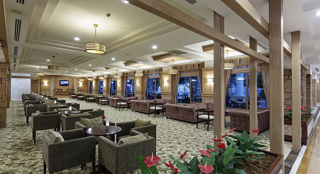 Несмотря на дату создания отеля, кажется 1998-99 гг,можно сказать, что это 5* 15-летней давности. Конечно, весь спектр услуг присутствует, и все неплохо функционирует, персонал старается, в общем все чисто, аккуратно. питание полноценное, но без изысков. Мебель,сантехника- все в рабочем состоянии. Кондиционер работает при закрытой двери балкона. сейф платно( как указано в информации).Фреш-соки платно. мороженое с 2до 4 и на ужин. В баре( между обедом и ужином) пицца, бургеры, картоф. Фри. Wi-Fi оооочень мееедленный! тоже 10-летней давности. в номере интернет не берите, еще хуже, и самое смешное,можно использовать только на одном устройстве. В Спа(сауна,хамам)- как-то скудно у них с полотенцами, нужно просить. На ресепшен есть 2чел-русскоговорящие. В общем все скромно. На простенькую пятерочку. до моря 150 метров. море теплое в конце июня-25град. Территория отеля компактная. основная масса отдыхающих русские и немцы(кто бы мог подумать 70 лет назад).рядом с отелем остановки- до Сиде 20минут-1,5$ и до Манавгата полчаса-2$. в 300 метрах от отеля есть небольшие базары . перелет был без проблем авиакомпания Onur air.
