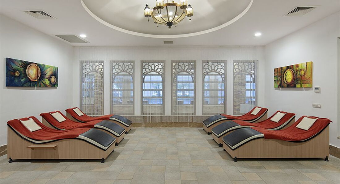 Сразу начну с минусов – анимация только на немецком языке и центральное кондиционирование, включают только по их собственному графику, В принципе отелем остались довольны. Отель рассчитан на европейцев, русских было всего 2 семьи, разместили минут через 15, номер хороший, работают 2 русских канала, на ресепшене и баре в ходу только английский и немецкие языки. До пляжа идти около минуты, лежаков достаточно. В ресторане довольно разнообразное питание, курица, рыба, говядина, овощи фрукты, хотя ротация происходит редко, хорошо подойдет для пар с детьми. Есть тренажерный зал для неприхотливых и спа-процедуры, на мраморной плите можно лежать бесплатно. Бассейн открытый и крытый (детский). Если вы хотите спокойный, размеренный отдых, то это для вас .Отель понравился рекомендую.
