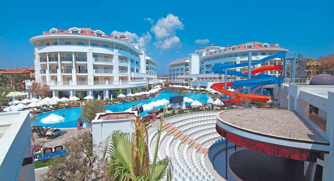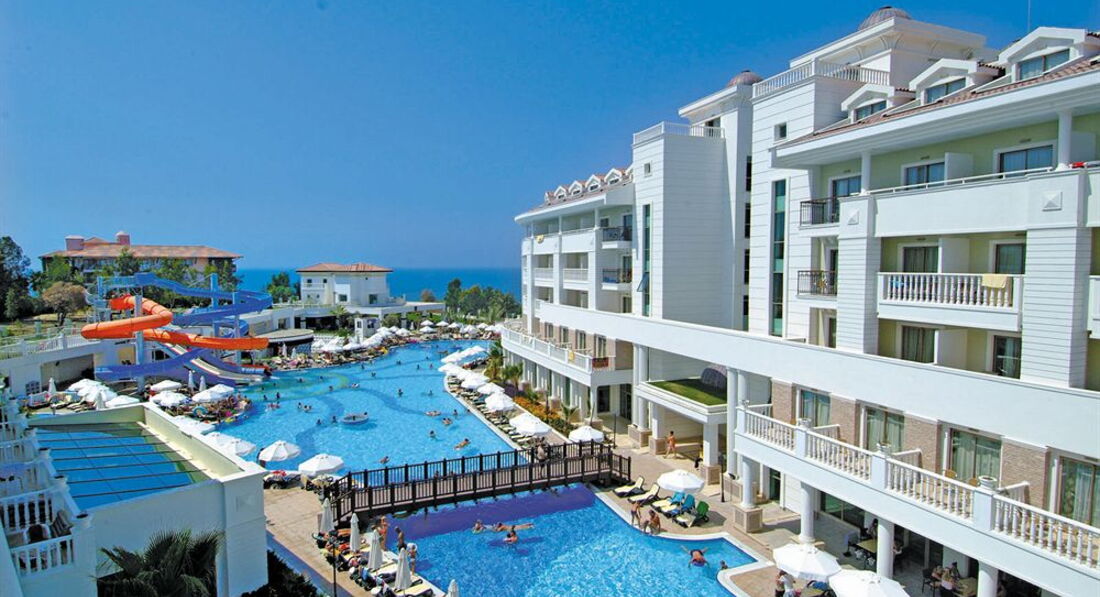 Только вернулись из отеля-в полном восторге! Побывали в раю)) номера-новые,просторные,красивые:кондиционер индивидуальный, телевизор плазма с множеством каналов (детям понравился турецкий канал Baby.tv-#7),в номере бар-холодильник,который ежедневно бесплатно пполнялся 8-мью бутылками различной воды.Всё новое,красивое,и ванна и туалет. Сам отель похож на дворец из восточной сказки)Персонал-это вообще отдельная история: в ресторане официанты,как пчелки снуют со скоростью света-предугадывают любое ваше желание,очень внимательные,стараются говорить по-русски...Еда очень вкусная и в большом ассортименте:ежедневно и рыба,и мясо,индейка,курица,различные гарниры,овощи,салаты,а десерты-мечта обжоры)))суппер!!!Утром дети ели йогурты,хлопья типа несквик или голдфлекс с молоком,бутеры с сыром,какао (его можно налить в кофеаппарате под видом горячего шоколада) Наши русские ребята аниматоры (как взрослые,так и детские)-супер профессионалы-отдельное спасибо Жене и Тане из Мини-клуба от Илюшки-лягушки)))Девчонки-вы лучшие!!! Брали несколько экскурсий,особенно понравился гид от Аннекстура Турсун!!Спасибо ему за интересную и веселую экскурсию))) Каждый вечер удивляла шоу-программа,где все аниматоры пели и танцевали0оболдеть!!! Шоу Mama Mia, Король Лев,Шоу факиров-просто замечательные!!Удивляет разносторонние таланты ребят!!!Территории как таковой нет,но много комнат в самом отеле (и игровая комната,и около бара на первом этаже),а конечно пляж-песок нежный и чистый,вход в море-пологий,дети купались даже при волнах))) Ехать от аэропорта минут 40,что тоже важно!! вообщем-в следующем году мы только туда))))от добра добра не ищут,как говориться)))