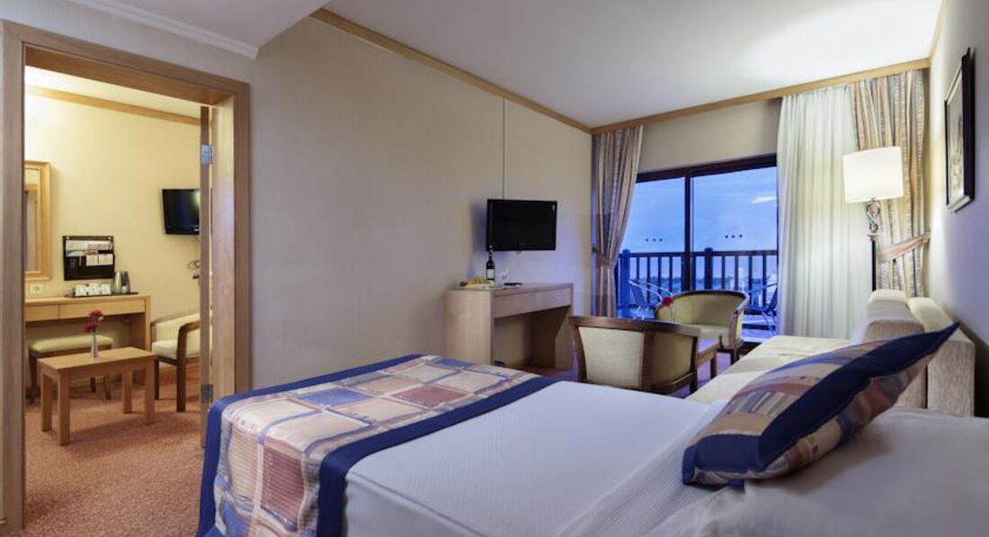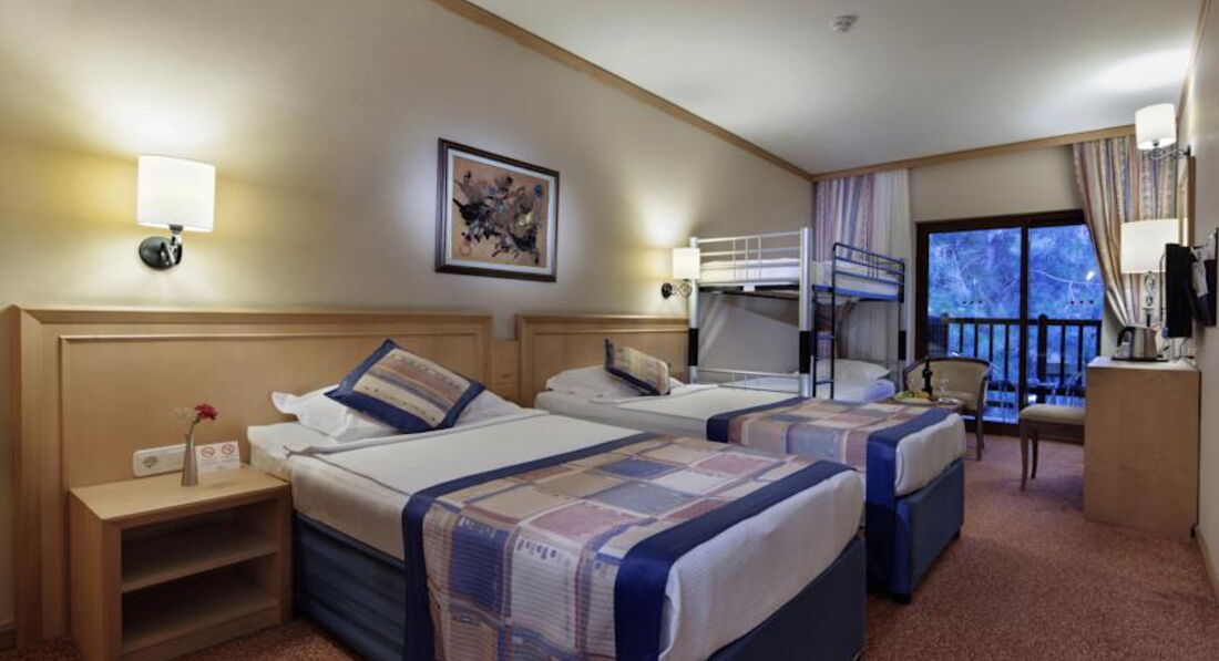 Отдыхали в начале июня,2 семьями с детьми.Все понравилось,русских много,немцев то же.Персонал плохо понимает элементарные русские слова,но очень стараться угодить,видно что прям начинают учить.Если знаете английский,хоть немного,проблем с пониманием не будет.Б большая ухоженная зеленая территория.Ходить по ней одно удовольствие . Имеется мини зоопарк,лошади пони.Анимация разная то на пляже,то на футбольном поле,то в амфитеатре,дискотека,детская анимация.2бассейна один с музыкой и водными развлечениями на воде главный.Второй спокойный.И там и там хорошо.Питание отличное,алкоголь местный хорошего качества.Кафешки по меню перекусы- бесплатно.Номерной фонд старый.Но все на месте,не напрягает.У убирают каждый день,минибар каждый день,чайник в номере с кофем и чаем.Если какие вопросы на ресепшене и есть менеджер по работе с гостями,решают быстро.Нужно быть по настойчивее .Детей много.В главный ресторан если вас большая компания нужно приходить к открытию,ч тоб стол большой занять,если 4 человека то нормально,но ресторан как то маловат,г де именно еда стоит.Прям тесно.А так и очереди могут быть,еда готовится быстро.Всем рекомендую.Море мелкое,нужно отойти от берега 50-70 метров,по колено,пляж песок,да и лежаков не найдешь,наши как всегда полотенца вешают.Это очень огорчало.Гид хороший от Пегаса , всегда был.Отель однозначно рекомендую,но только не 1 этаж.Сыро будет да и низко.Балкон низко.А так все супер.