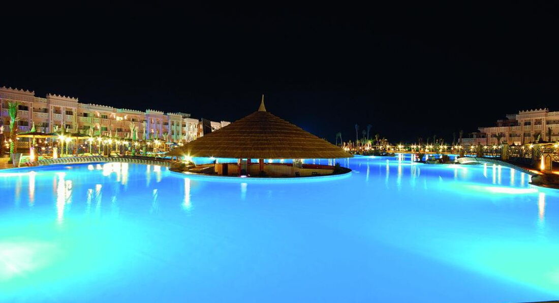 Территория отеля большая и шикарная. Гулять по ней одно удовольствие. Много зелени, красивые кустики, цветы, деревья, пальмы. Несколько ресторанов, три бассейна для взрослых, один для малышей, также джакузи имеется. Территория совместно с другим отелем этой же линии Beach Albatros, его тоже можно посетить, там есть горки классные и для детей и дл взрослых. Вечером обстановка становится магической, все подсвечено огоньками. Места для фотографий невероятное количество. Это целый город, а не отель. Там есть все, что нужно.