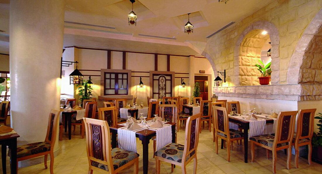 Ресторани, бари: ресторан Таджин. Марокканський ресторан пропонує шведський стіл: сніданок з 07:00 до 10:00; 00 та вечеря з 18:30 до 21:30; Середземноморська кухня пропонує шведський стіл: сніданок між 07:00 та 10:00, обід з 12:30 до 14:30 та вечерю з 18:30 до 24:00; Ресторан Іль-Камінетто пропонує шведський стіл під час сніданку з 07:00 до 10:00, свіжі, щойно приготовані, справжні страви італійської кухні під час обіду з 12:30 до 14:30 та вечеря з 18:30 до 21:30. ; Ресторан Азіатик пропонує страви китайської, японської, тайської та індійської кухні, шведський стіл: сніданок з 07:00 до 10:00, пізній сніданок з 10:00 до 11:00, вечеря з 18:30 до 21:30; Ресторанний дворик: спробуйте чудові закуски: салати, картопля фрі, піца, хот-доги, гамбургери, спагетті з 12:00 до 15:00, а також насолоджуйтеся прохолодними напоями до заходу сонця. Ресторанний дворик також пропонує пізні закуски з 15:00 до 17:00; Бар Острів (бар біля басейну). Насолоджуйтесь гарною погодою та видом на басейн, вибравши свій улюблений напій у барі, де щодня запропонують суп з 11:00 до 12:00, полуденок для дітей з 17:30 до 18:00 та морозиво для дітей (до 12 років) з 12 :00 до 18:00; Бар на пляжі: прохолодні напої та закуски з 10:00 до 18:00; Бар Ле Паша пропонує всі види напоїв з 17:00 до півночі.