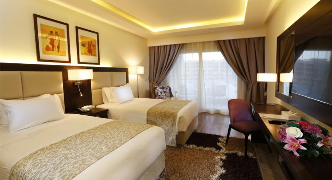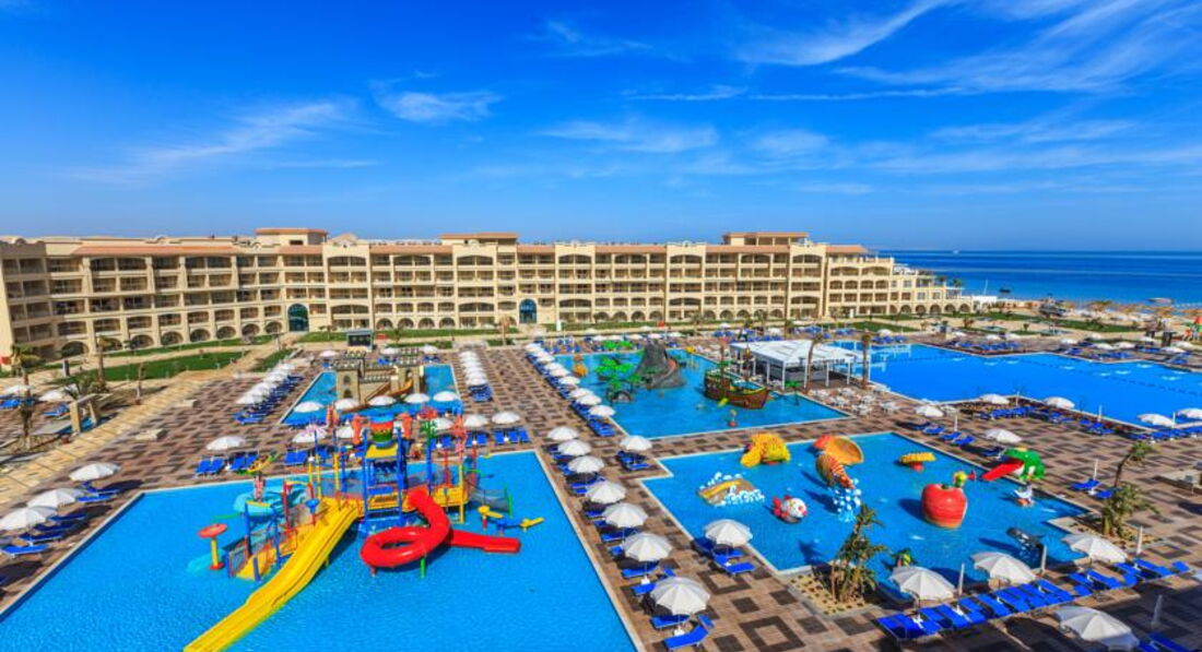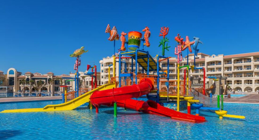 Скажу так отель для Египта очень достойный, остальное по порядку)))) Отель расположен близко от аэропорта, прибыли примерно около 10 утра пока позавтракали (минут 20) номер был готов, заселили быстро на нижний этаж как и просили, так как были с коляской ,хотя как потом посмотрели лифты есть везде, что очень удобно)))) все номера смотрят внутрь отеля, что естественно плюс, кто бывал в Египте, то поймёт что на улице смотреть нечего))) уборка номеров на 4,если чаевые на 5, не зависимо от чаевых вода, кола и спрайт добавляют постоянно, плюс воду дают везде по запросу сколько угодно))) пляж хороший много песка, зонтики хорошие спасают и в 45 жары, море при отливах далеко не уходит всегда есть где поплавать и детям и взрослым, далеко идти не нужно))) персонал вежлив и приветлив,один существенный минус детское диско в основной части направлено на немецких детей, песен на русском языке нет, хотя аниматоры очень даже хорошо разговаривают на русском)))анимация ,молодцы, весело и интересно))))детям горки и детские бассейны просто рай))) ну и самое главное - это про еду,думаю интересно всем))) завтрак как и везде однообразный, но очень даже расширенный ассортимент выпечки, сух.завтраков,йогуртов, джемов и овощей, что есть не везде свежевыжатые соки бесплатно с утра, только нет каш для детей это минус, но спасал молочный суп своей гущей + масло вот и каша)))днём и вечером 3 ресторана на выбор,где есть еда на любой вкус и рыба,и мясо, и курица, и утка(не всегда) на моё усмотрение один небольшой минус нужно помечать как то перчёные блюда)))детский стол правда не большой , но всегда есть пюре и макароны двух видов, мясо и курица, а не только картошка фри как пишут в других отзывах)))также имеется снек бар возле пляжа)))пиво бутылочное, соки паки, мороженое почти весь день в двух барах))) очень понравился бар на ресепшне и по обслуживанию и по напиткам)))поэтому судите сами, может дома у кого-то и лучше))) короче говоря отдых понравился и с удовольствием вернёмся в этот отель))) Обращение к администрации отеля: очень бы не хотелось чтобы уровень отеля упал, спасибо)))