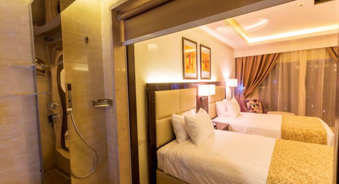 Отличное расположение отеля, прямо на променаде, так что все торговые точки прямо перед выходом. Аквапарк Синдбад в пешей доступности.
