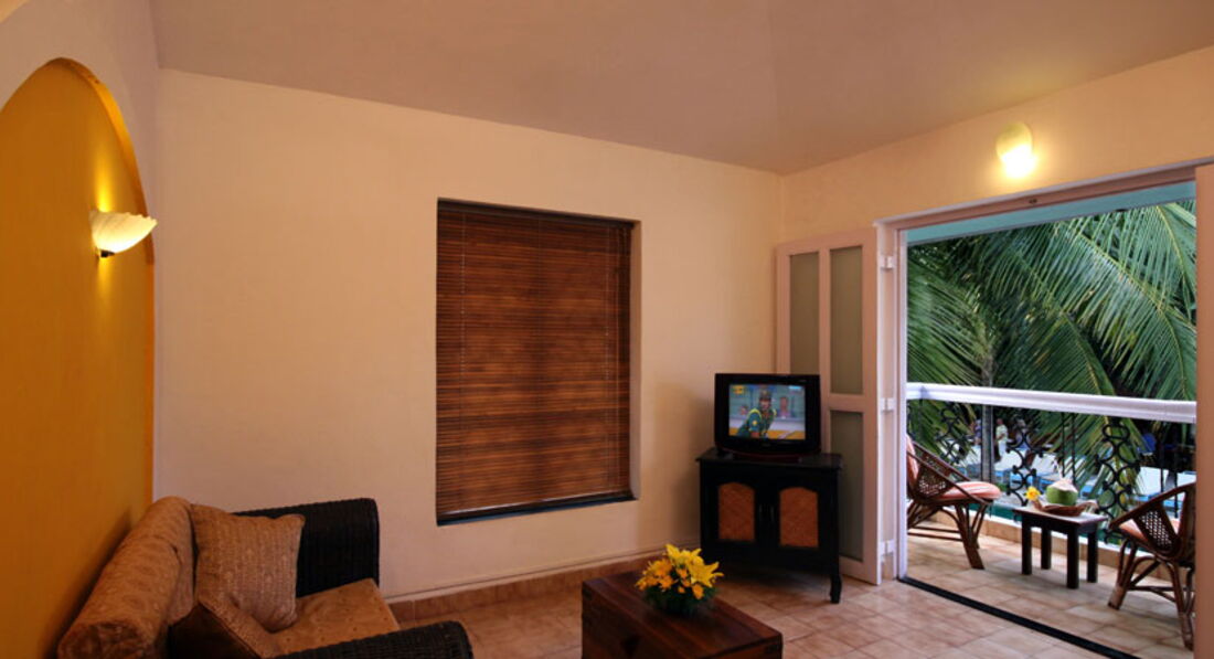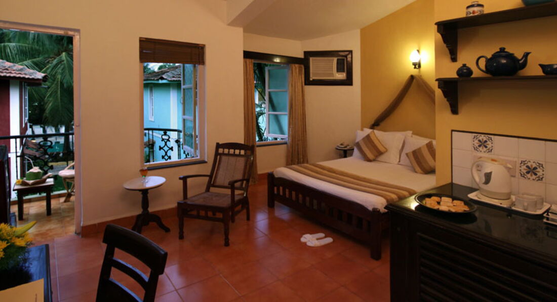 Отдыхали в ноябре 2016 года парой. Ждать заселение пришлось часа 2, убирали номер наш. жили в вилле под буквой М, розового цвета за бассейном. Общие впечатления - хорошие. Мы знали куда едем, поэтому этот отель для Индии оцениваю на "хорошо". В номере был холодильник, новый телевизор (правда без русских каналов). По вечерам мы не гуляли практически из-за сумасшедшего хаосного движения на дорогах, жуткой темноты и отсутствия тротуаров, поэтому было скучновато, нечего было посмотреть по ТВ, вай-фай в номерах отсутствует. Уборка - оставляли ключ на ресепшене, убирали. Правда полотенца пришлось просить поменять через неделю, сами поменять они не догадались. За это - минус отелю. У нас были только завтраки. Хорошие, сытные, большой выбор и разнообразный. Понравилось. В основном отдыхающие - англичане, к ним и отношение соответствующее ) это ощутимо, заметно...место на пляже замечательное, немноголюдное. Мы брали лежаки у отеля на пляже Маркус, отличное место плюс охрана. Можно было смело оставлять вещи и идти наслаждаться океаном. Волны супер, большие, так что не рекомендую отдых с маленькими детьми в этом месте из-за больших волн, мощность волн впечатляет, труханы сдувало только в путь)) Облазили форт весь, он совсем рядом.в целом отелем довольны. рекомендуем!!!