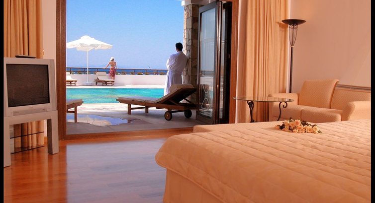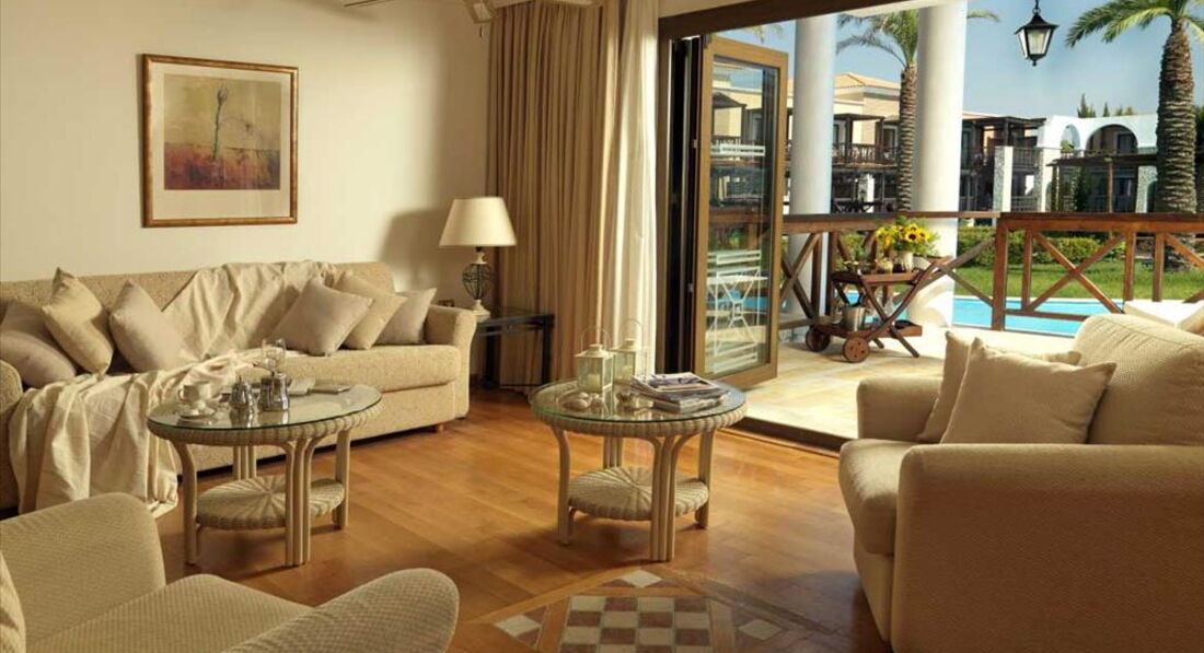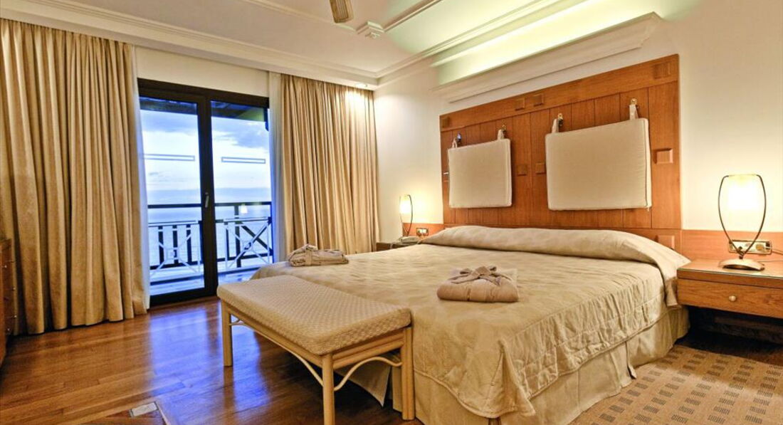 Olympia suite (розташований на узбережжі, спальня, вітальня з обідньою зоною та кабінетом, осн. ліжко – 2 односпальні, дод. – розкладний диван-ліжко, ванна кімната з джакузі, окремий туалет, тераса з виходом до індивідуального басейну, макс. 5 чол. ., 75 м2),