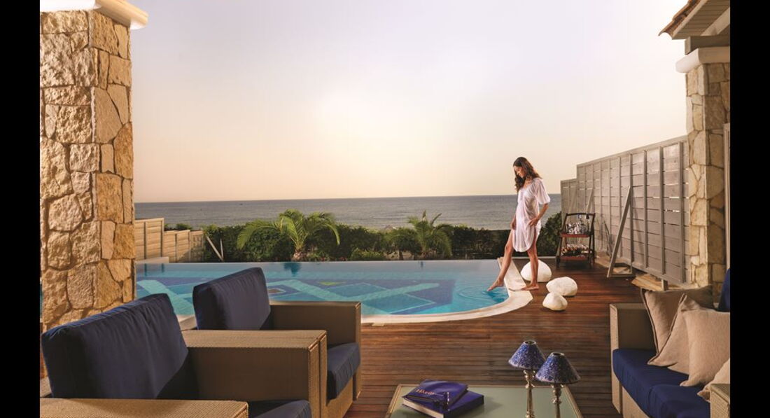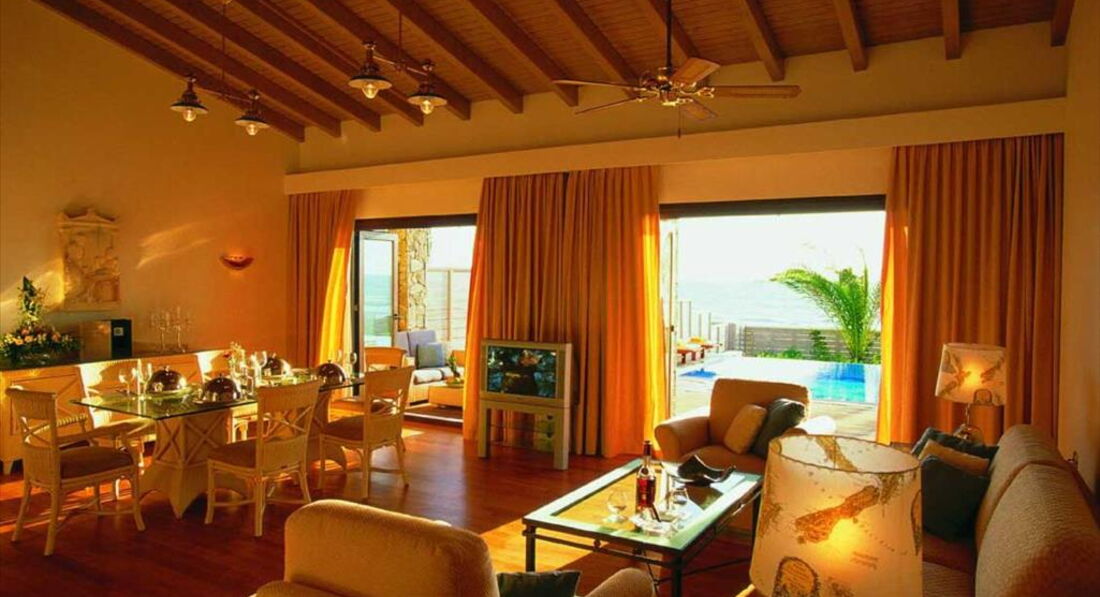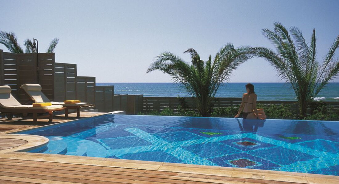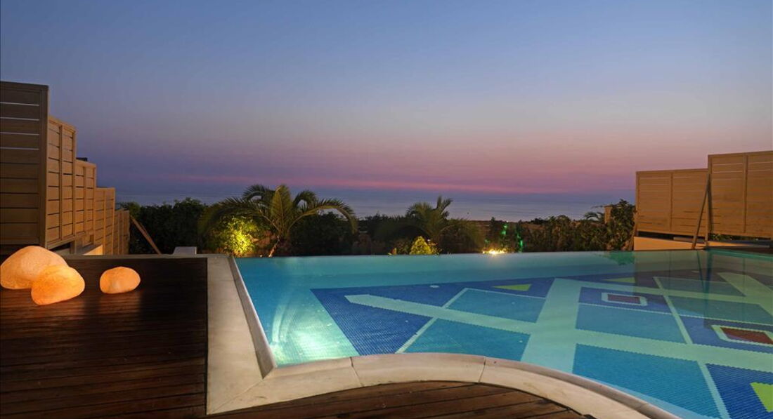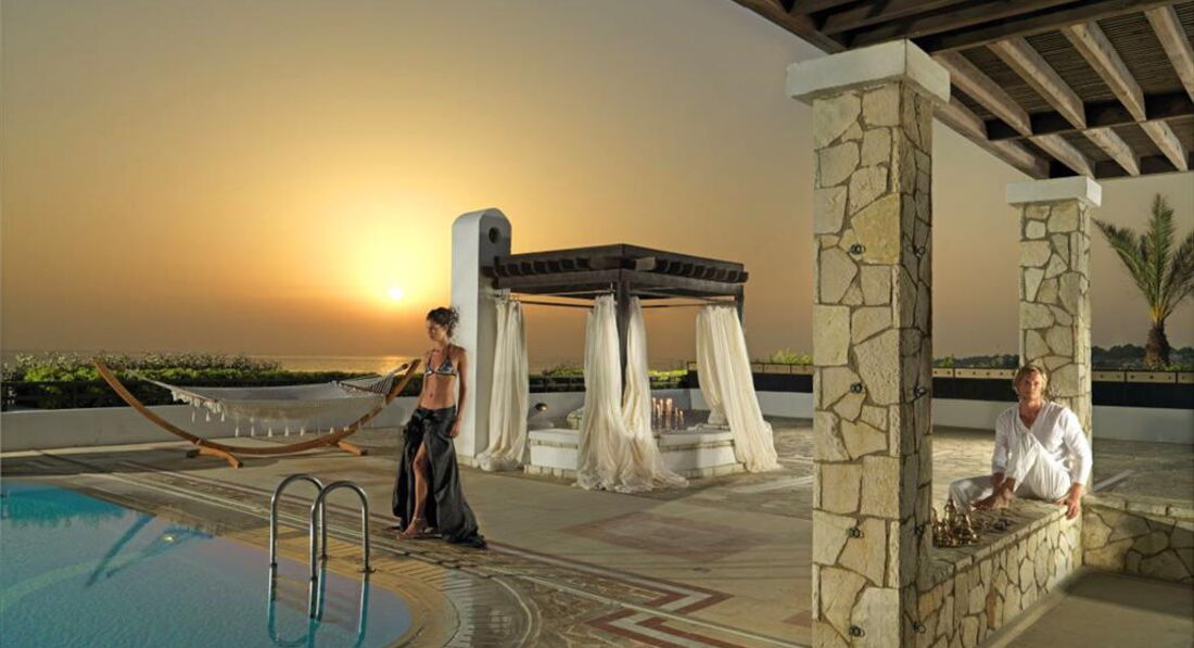 Phaidra suite (розташований на узбережжі, 2 спальні (одна спальня з кабінетною зоною), 2 односпальні ліжка в кожній спальні, додаткове – односпальне ліжко, вітальня з обідньою зоною, 1 ванна кімната з джакузі, 1 WC з душовою кабіною, тераса до індивідуального басейну, максимум 5 чол., 110 м2).