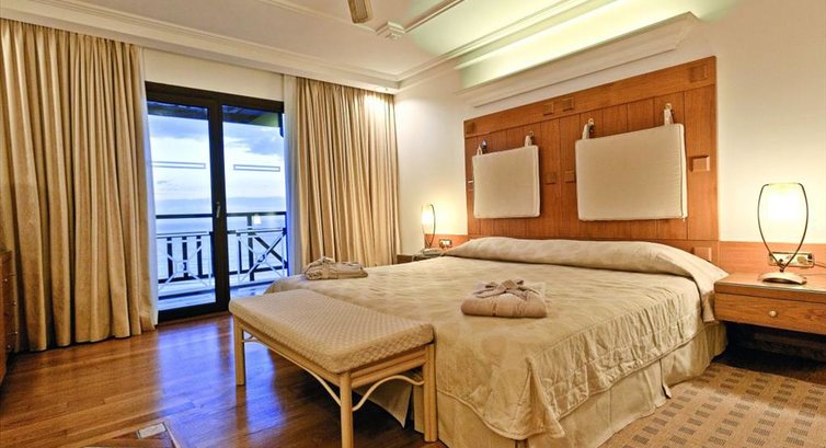 Superior suite main building SF (розташовані в головній будівлі з видом на море, 1 спальня з розсувними дверима, вітальня зі їдальнею та кабінетною зоною, осн. ліжко – 2 односпальні, доп. – розкладний диван-ліжко, 1 ванна кімната (з гідромасажем) , 1 WC з душовою кабіною, макс. 4+1 чол., 53 м2),