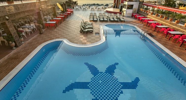 Почитав последние отзывы, ждала худшего. Приехали мы в отель ночью, три семьи (2 взр, 3 взр, и мы вдвоем с годовалым сыном). Заселили нас довольно быстро, но в разные корпуса. Одной семье дали номер family и сказали, что утром переселят. Нам достался номер 3106 , но сразу предупредили, что будет шумно. Мы решили селиться, т.к. на руках у меня спал ребёнок, и мне уже очень хотелось его положить. Сказала, утром посмотрим. Про детскую кроватку спросила сразу, но мне сказали что в номере ее некуда поставить. Действительно, номер оказался маленьким, но с двумя большими кроватями. Кондиционер, стол, телевизор, холодильник (холодил плохо, но для детского питания в самый раз, достали-съели, зато не испортилось))). Сантехника уставшая, но всё рабочее и вода горячая была всегда, с маленьким ребёнком это важно))) Утром открыв окно и увидев эту красоту, решили остаемся!!! Да вечером шумно из-за анимации, при чем больше шума от соседнего отеля, но мы каждое утро с сынулей встречали солнце, и всё остальное показалось мелочью))) территория отеля небольшая, два бассейна, в т.ч. отделение для деток. Детский уголок в виде корабля с горками, сын играл , понравилось. Есть детская комната с игрушками. Тренажерный зал - хотя это громко сказано, но несколько тренажеров есть. В хамаме есть солевая комната. Я ходила на массаж и на весь отдых команата для нас была бесплатно, ходили с сыном несколько раз, когда сопли у него появились от кондиционера. Вроде помогло))) по крайней мере сопли прошли без лекарств))) Пляж небольшой, но лежаков хватало. Полотенца уставшие, но если покопаться можно найти приличные, бордовые были вообще новьё! Еда... Да вообщем то нормальная, да! Свинины жареной нет!!!))) но это беда всей Турции))) пару раз ели в кафе на территории отеля, брали баранину, очень вкусно и относительно недорого. Разнообразили питание))) В общем не всё так страшно. Очередь в столовку!!! Это ппц. Что за народ у нас?!?! За 5 минут до открытия выстраиваются! Зачем??? Через час после открытия всё то же самое, запасы еды пополняют!!! Пару раз жарили курицу как на шаурму, ммммм, очень вкусно. А так курица в разных видах была каждый день. Пару раз рыбу на гриле жарили. Фрукты: яблоки сладкие очень, сливы, арбуз каждый день у нас был на ужин, один раз виноград. Да! Посуду моют сами тут же, но ведь моют! Да не очень чисто, но стараются. Если что-то кружки кончились, это не значит, что больше не будет их! Торопятся, собирают, моют. Спиртное с 10 утра пиво, очень даже приличное. Водку у нас мальчики часов с двух пили, раньше вроде не давали им. Коктейли какие-то смешивали вкусненькие, правда зависило от бармена, один раньше 9 вечера не наливал, а другой уже в три дня намешал мне вкусняшек))) в общем, не плохой отель с небольшой территорией и с шикарным морем. Очень боялась, что едем с ребёнком в ужас, но всё оказалось не так страшно. Сынок накупался, наигрался, ну и мы остались довольны.