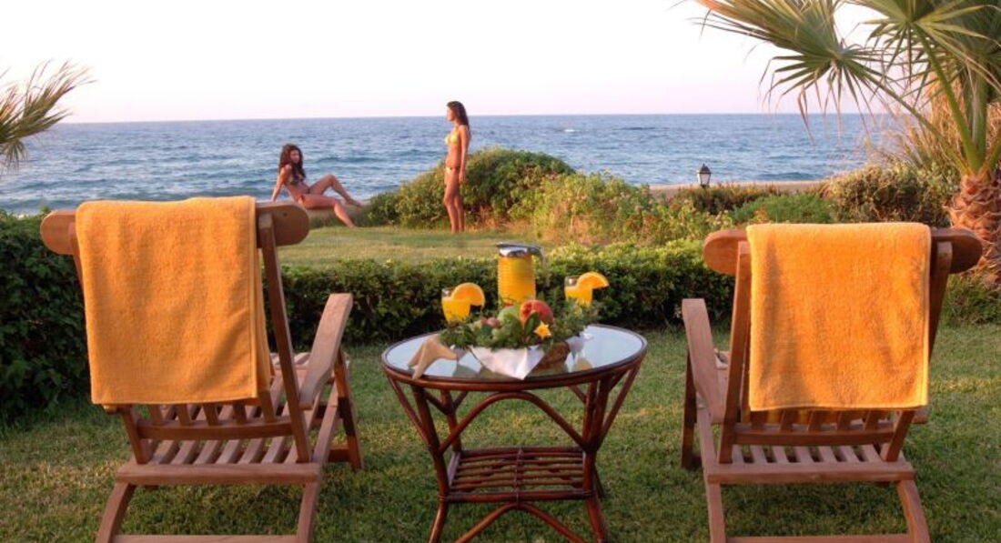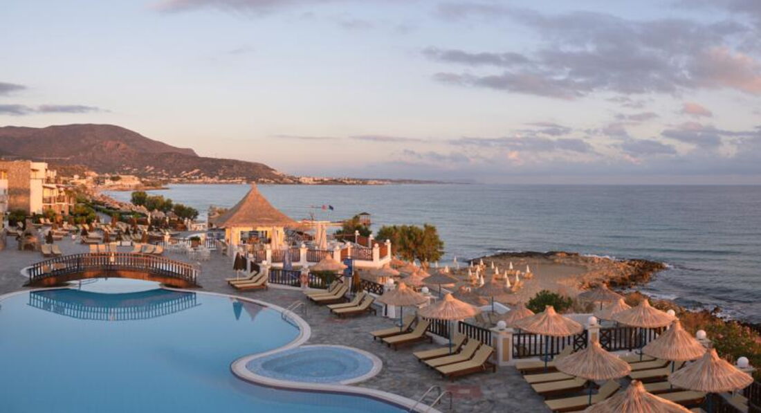 Розташування: розташований за 30 км на схід від аеропорту м. Іракліон, в курортному місті Малія, на березі моря.