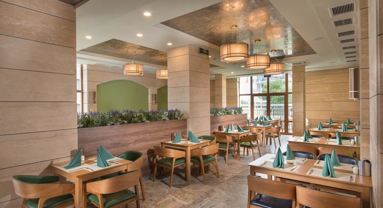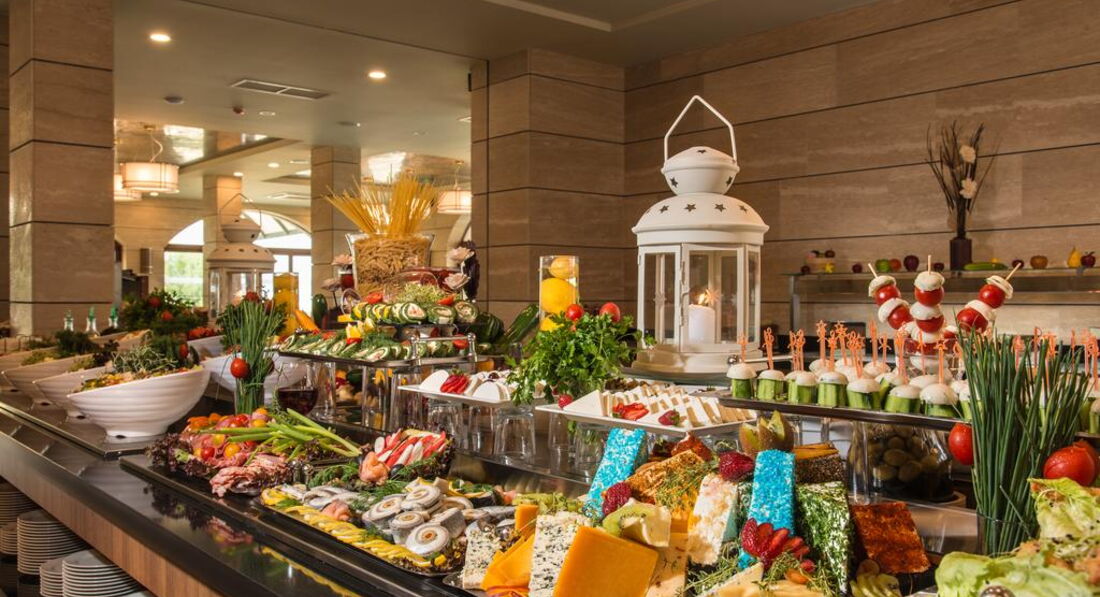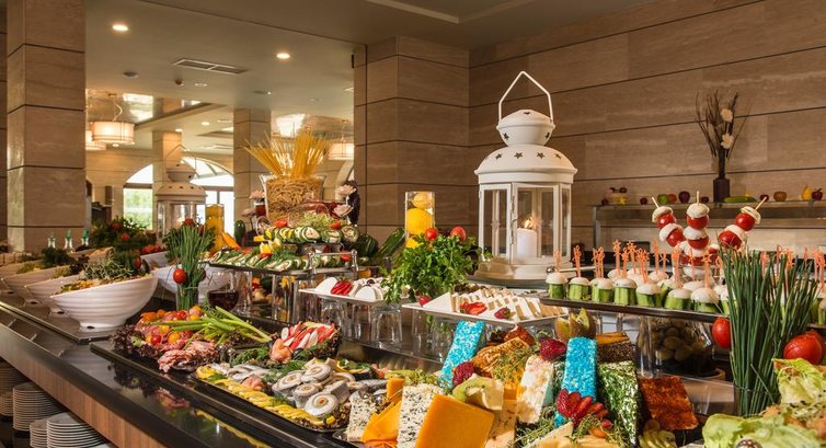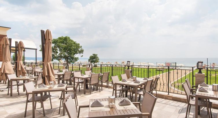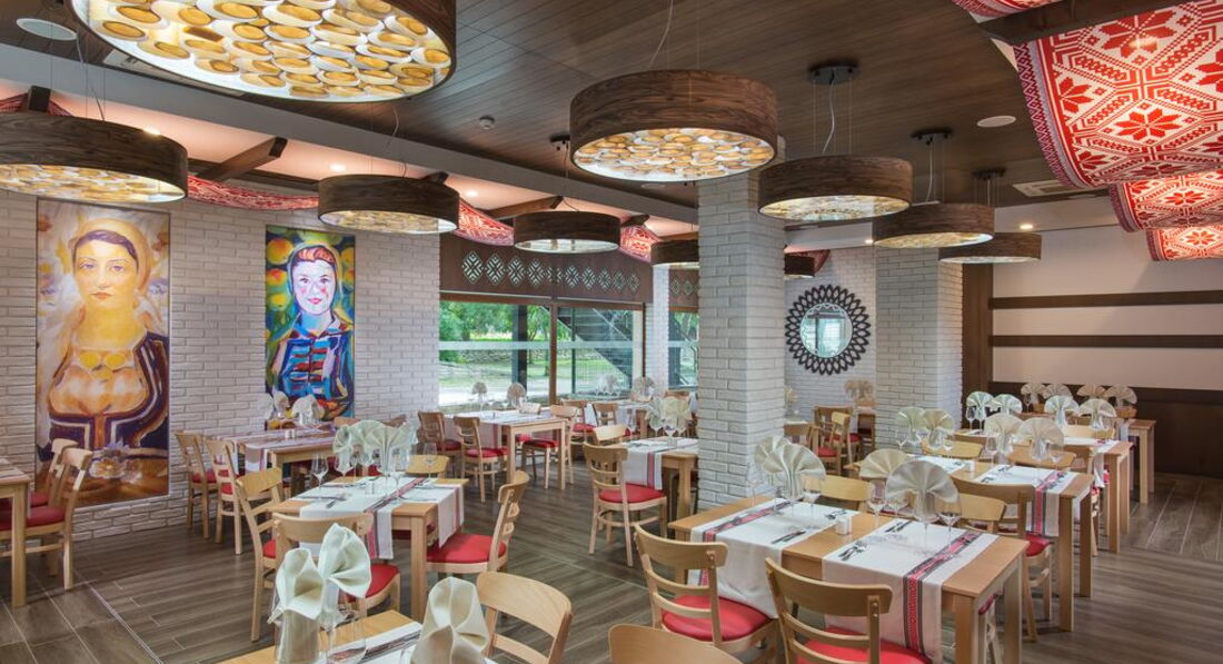 • 1 головний ресторан (сніданок: 07:30-10:00, обід: 12:00-14:00 та вечеря: 18:30-21:00 — шведський стіл)<br> • 2 тематичні ресторани A la carte — Oresha ресторан болгарської кухні (19:00-21:00) та Mirage ресторан середземноморської кухні (19:00-21:00)